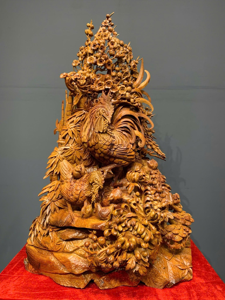 Tượng Gia Đình Gà Gỗ Hương Cao Cả Kỷ 157 Ngang 70 Sâu 42 (cm) - Kỷ Cao 50 (cm)