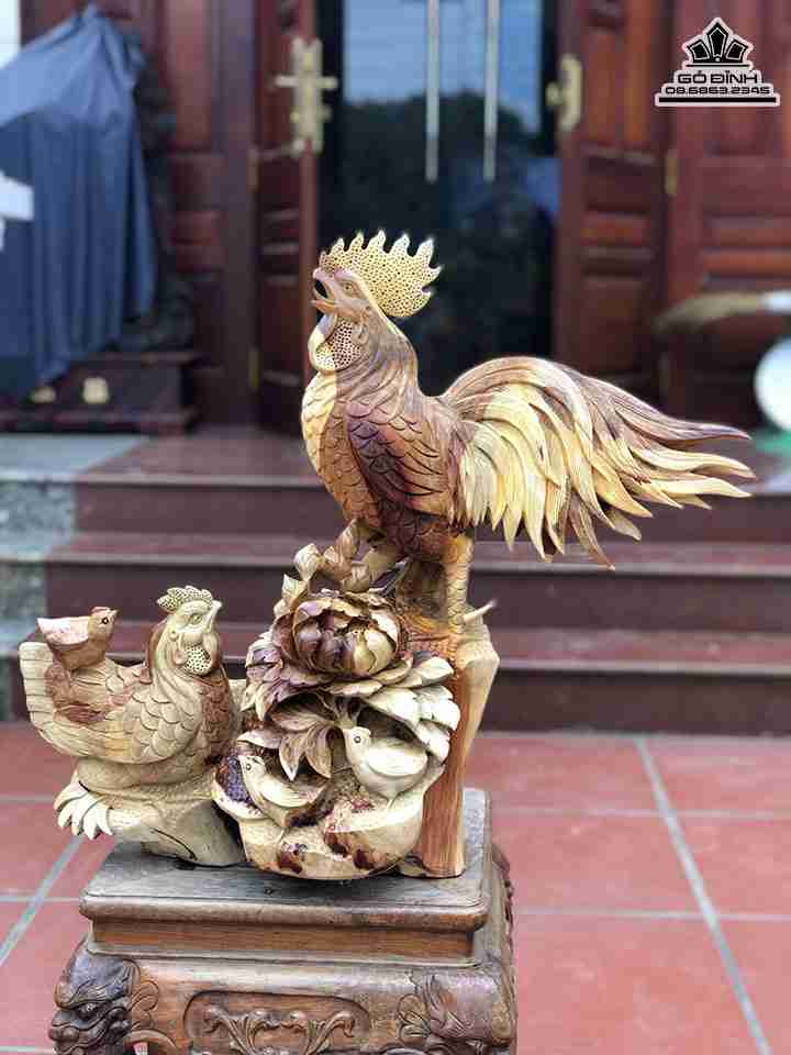 Tượng Gia Đình Gà Gỗ Hương Việt Cao 58 Ngang 70 Sâu 26 (cm)