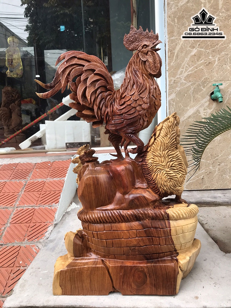 Tượng Gia Đình Gà Gỗ Hương Việt Cao 70 Ngang 44 Sâu 28 (cm)