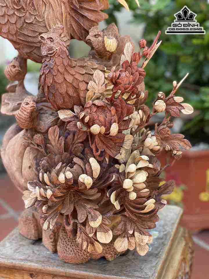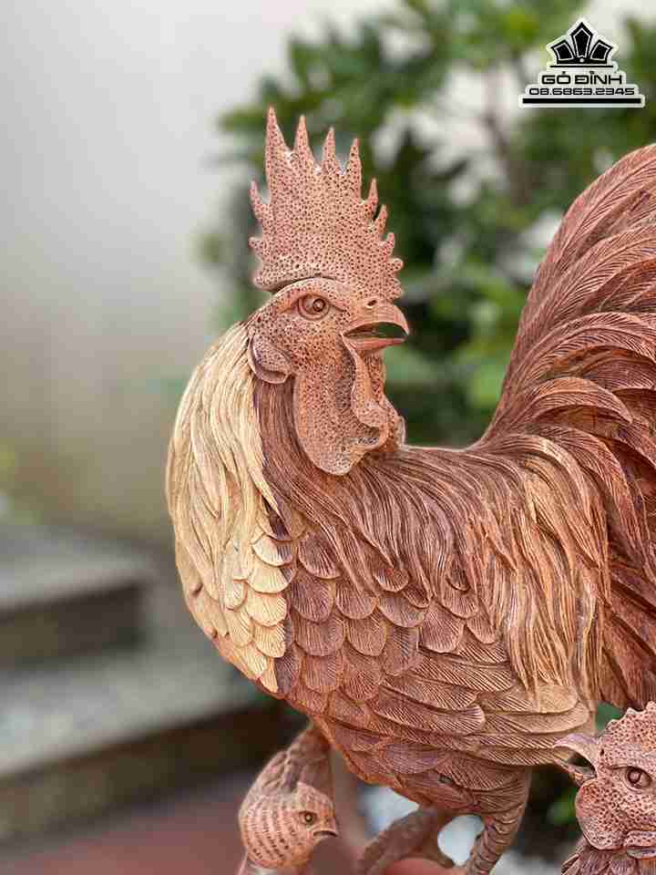 Tượng Gia Đình Gà Gỗ Hương Việt Cao 80 Ngang 45 Sâu 30 (cm)
