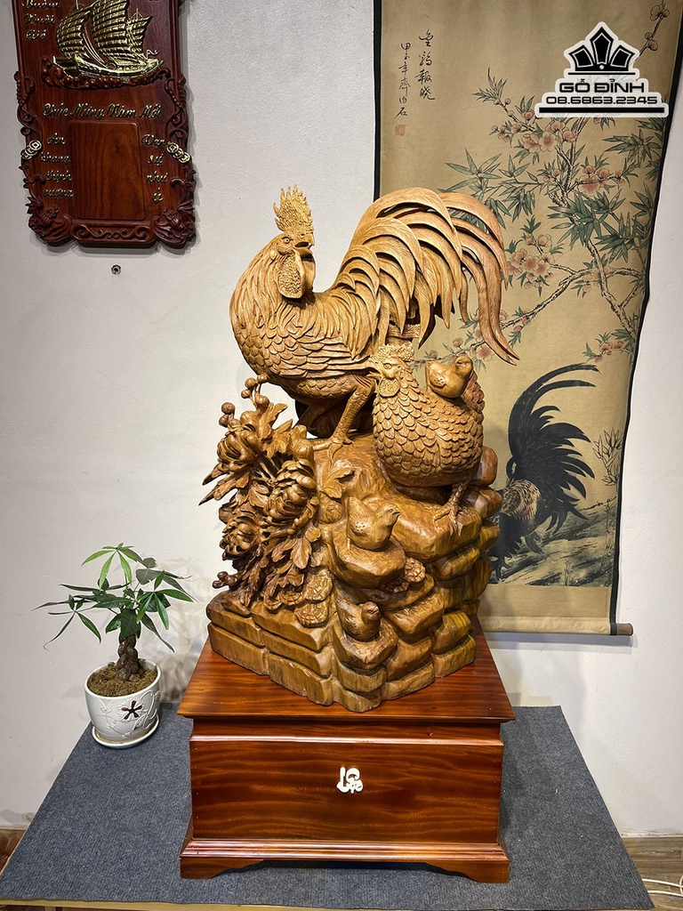 Tượng Gia Đình Gà Gỗ Ngọc Am Cao 76 Ngang 48 Sâu 40 (cm)