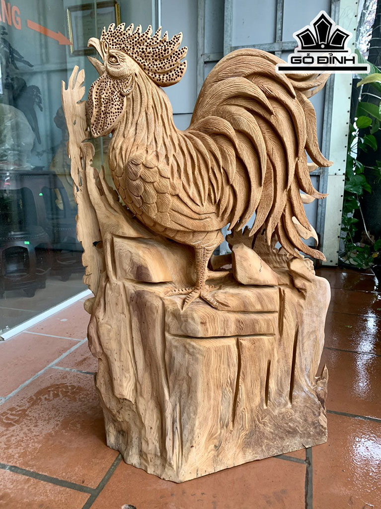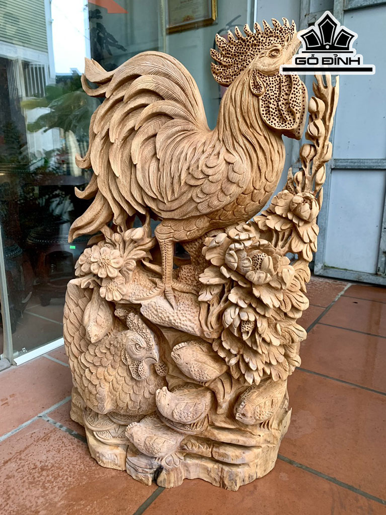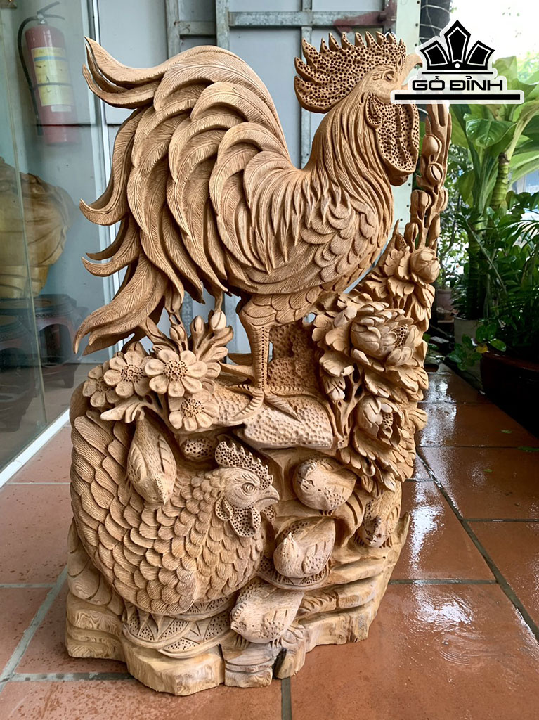 Tượng Gia Đình Gà Gỗ Ngọc Am Cao 88 Ngang 57 Sâu 27 (cm)