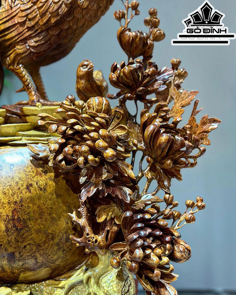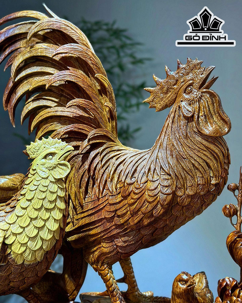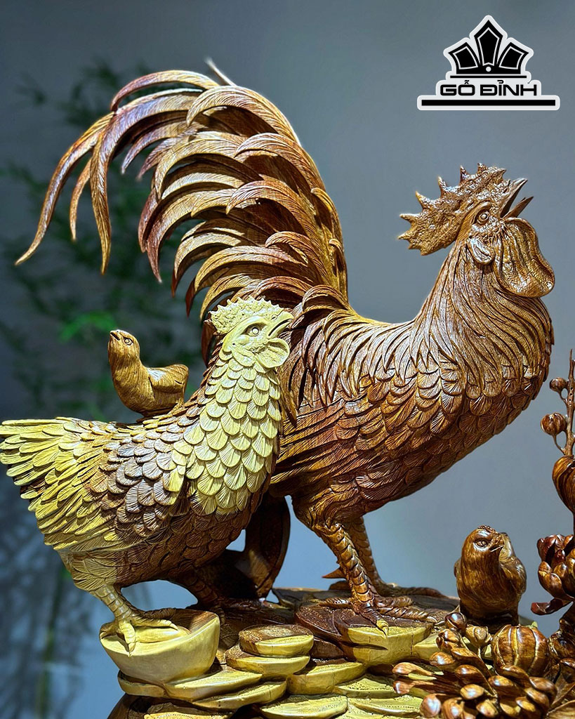 Tượng Gia Đình Gà Gỗ Nu Hương Cao 80 Ngang 60 Sâu 39 (cm)