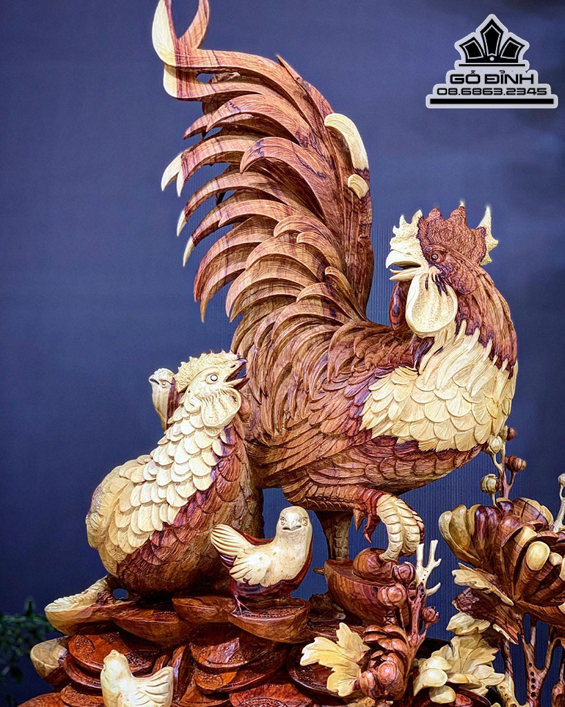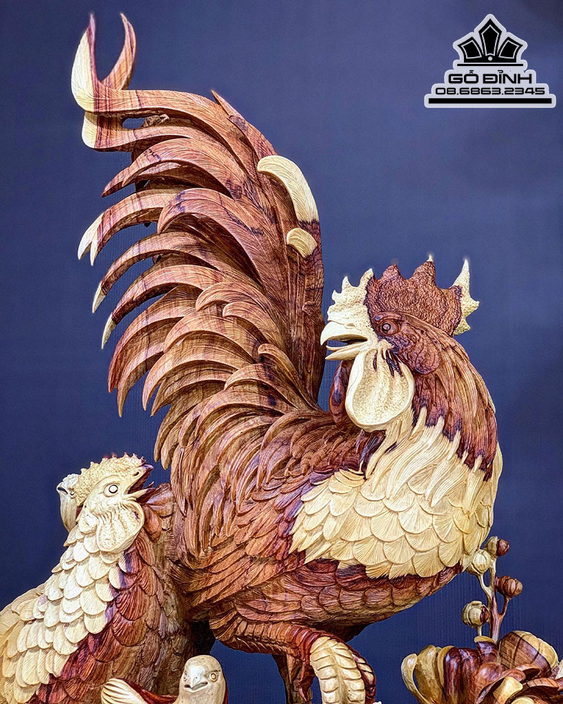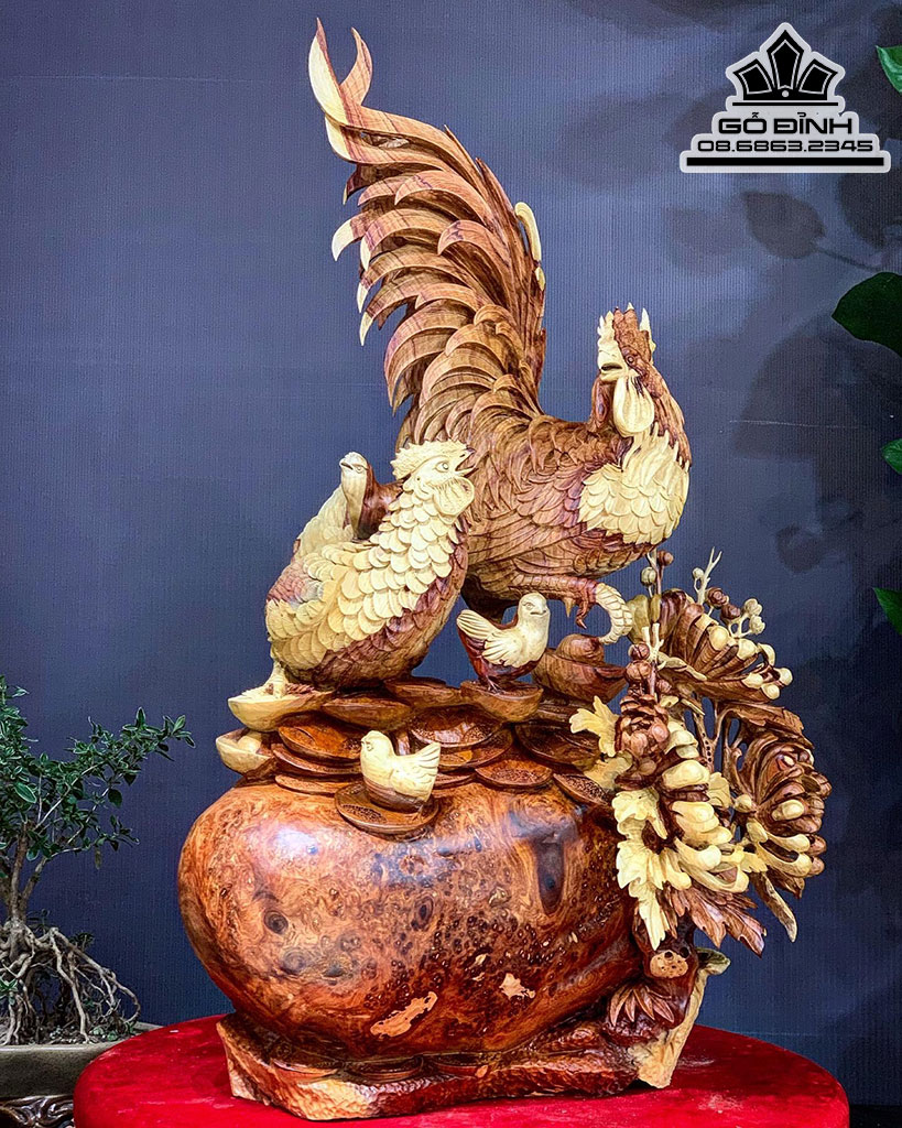 Tượng Gia Đình Gà Gỗ Nu Hương