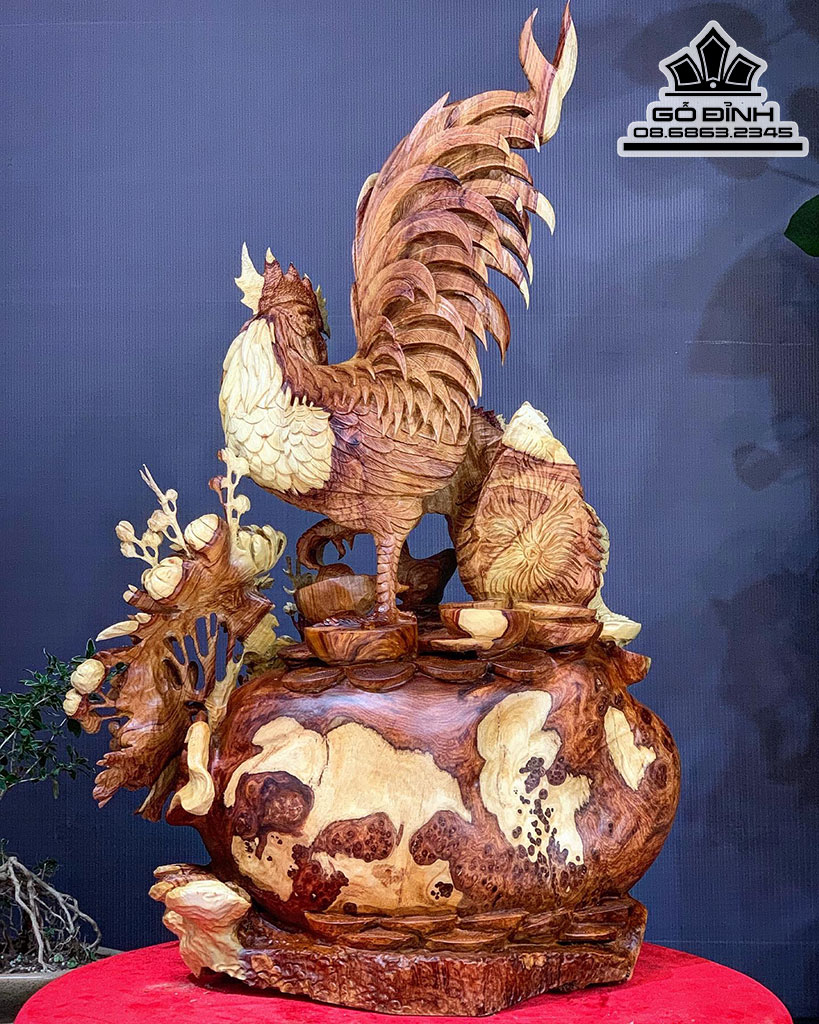 Tượng Gia Đình Gà Gỗ Nu Hương Cao 82 Ngang 52 Sâu 30 (cm)