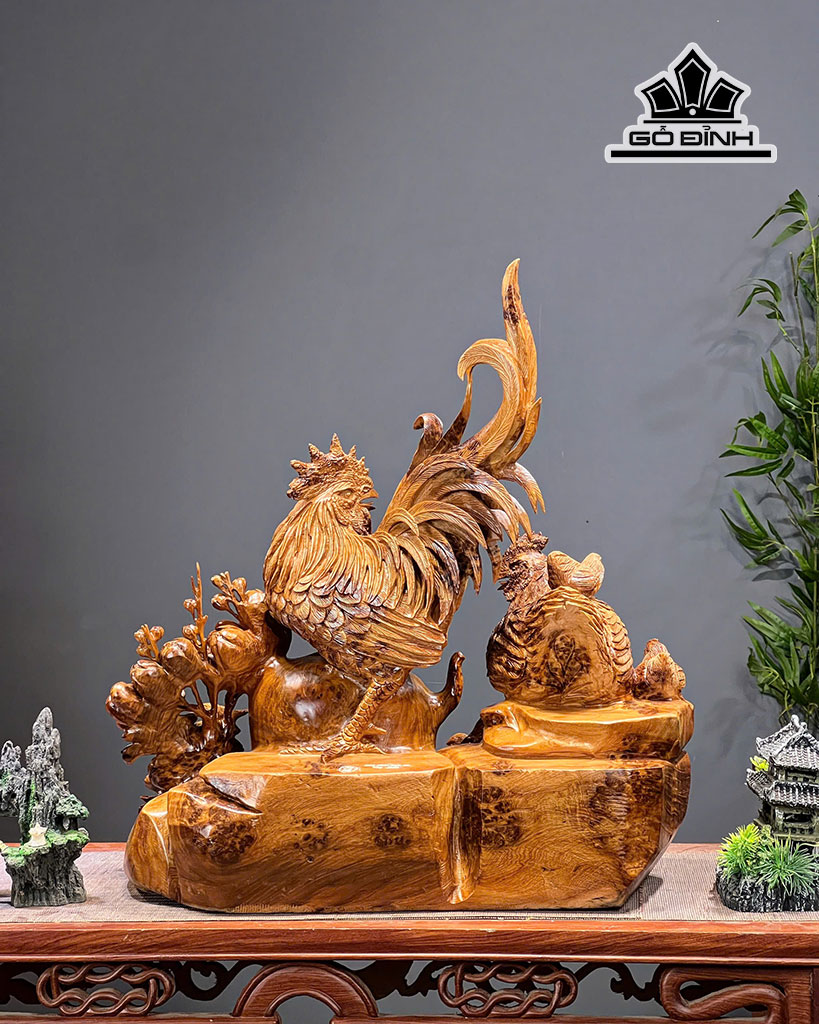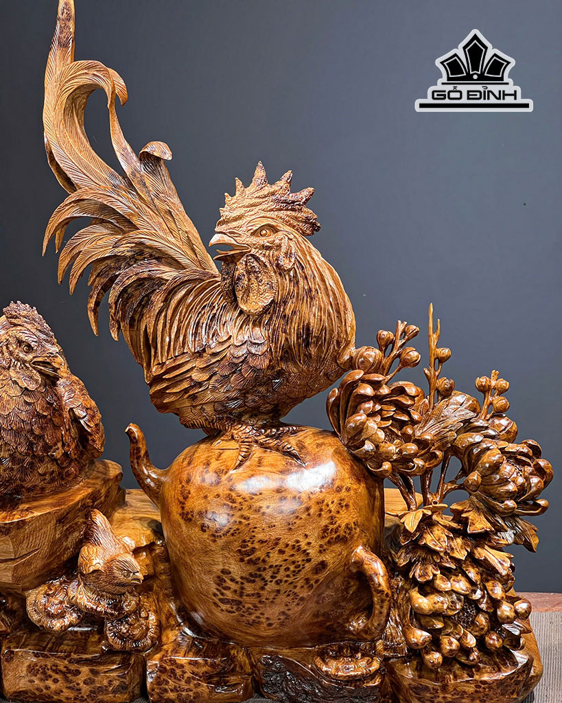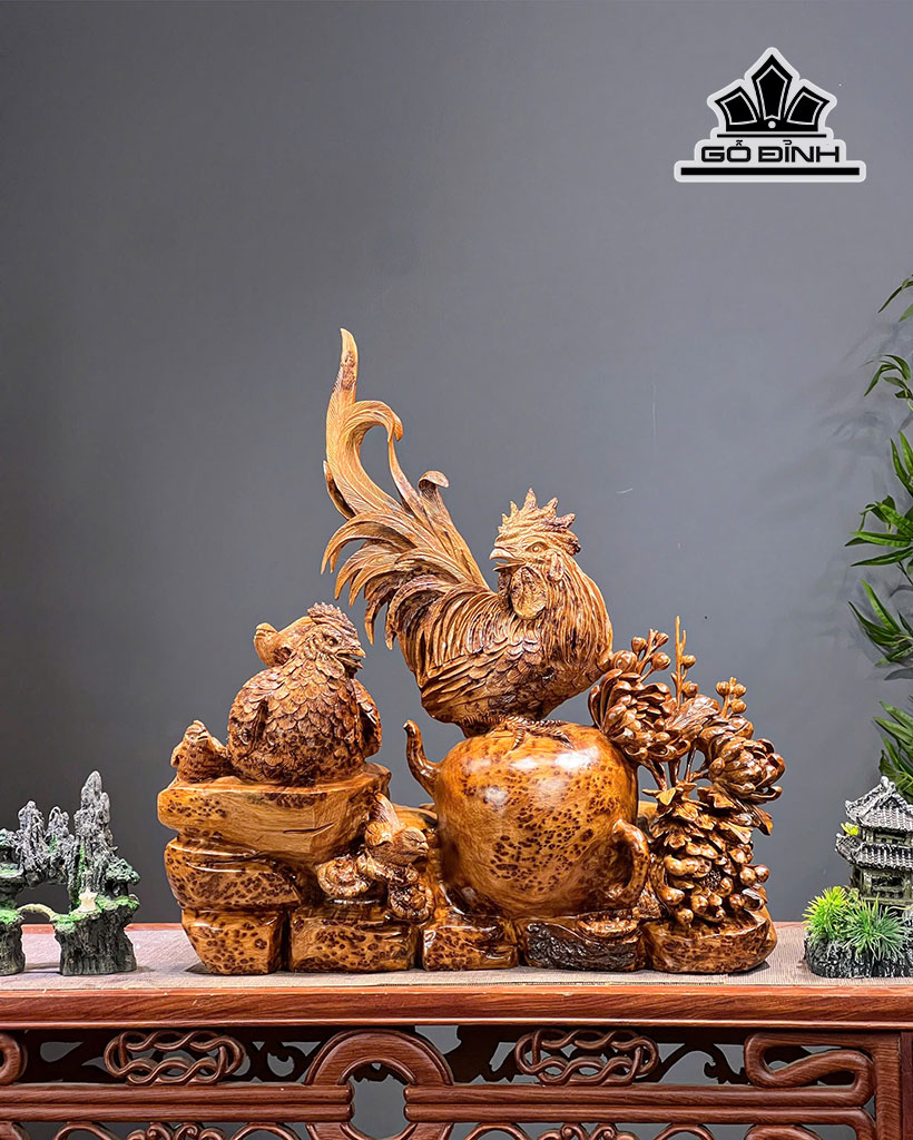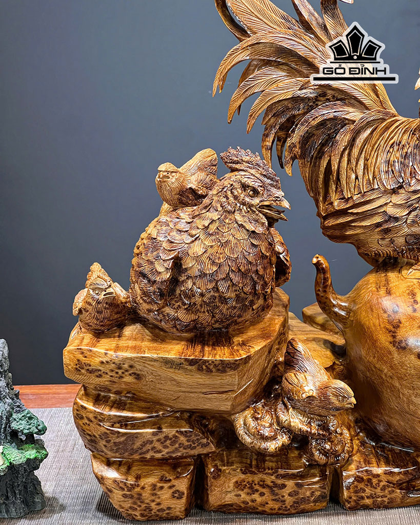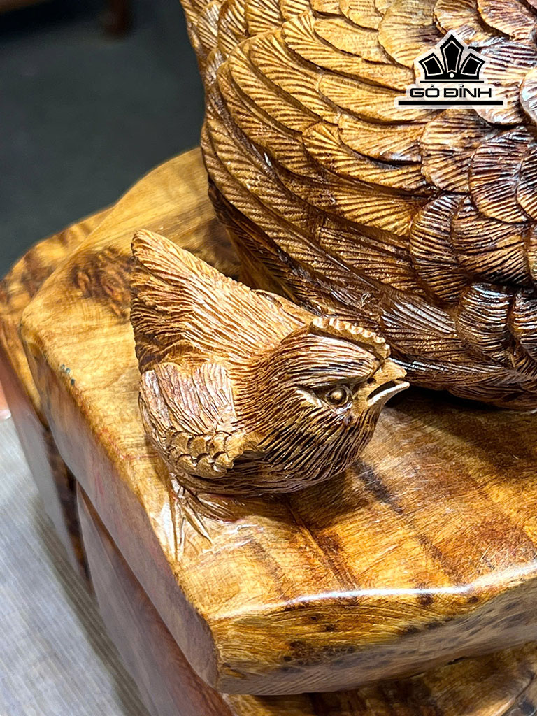 Tượng Gia Đình Gà Gỗ Nu Ngọc Am Cao 55 Ngang 51 Sâu 24 (cm)