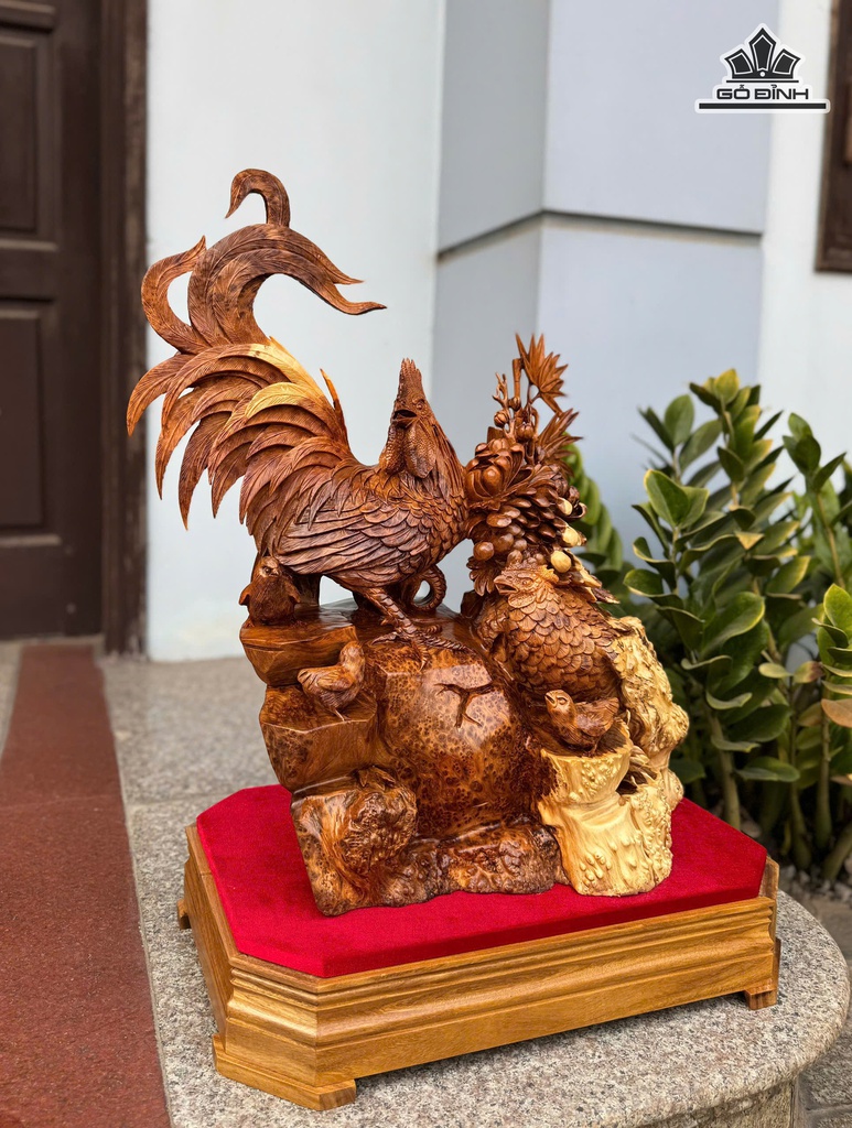 Tượng Gia Đình Gà Gỗ Nu Ngọc Am Cao 69 Ngang 48 Sâu 29 (cm)