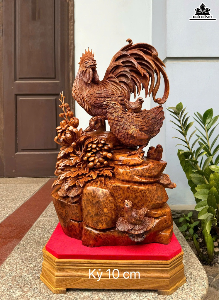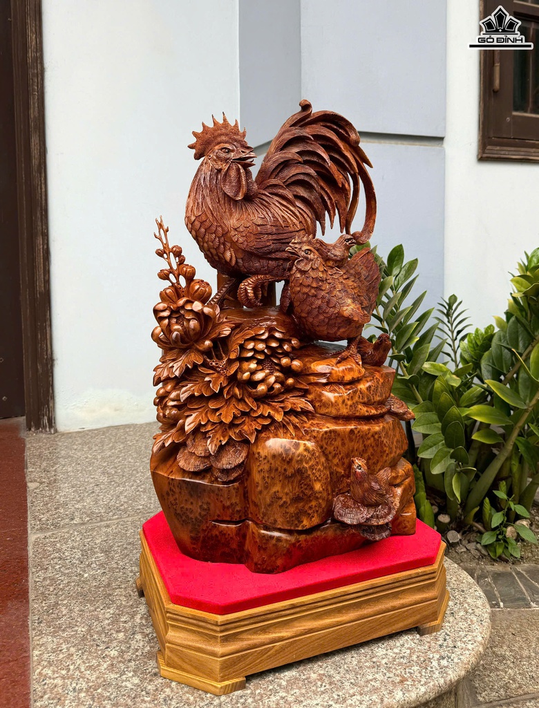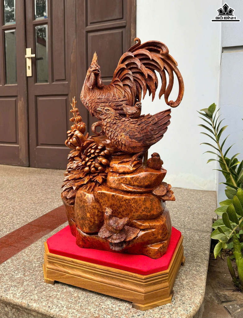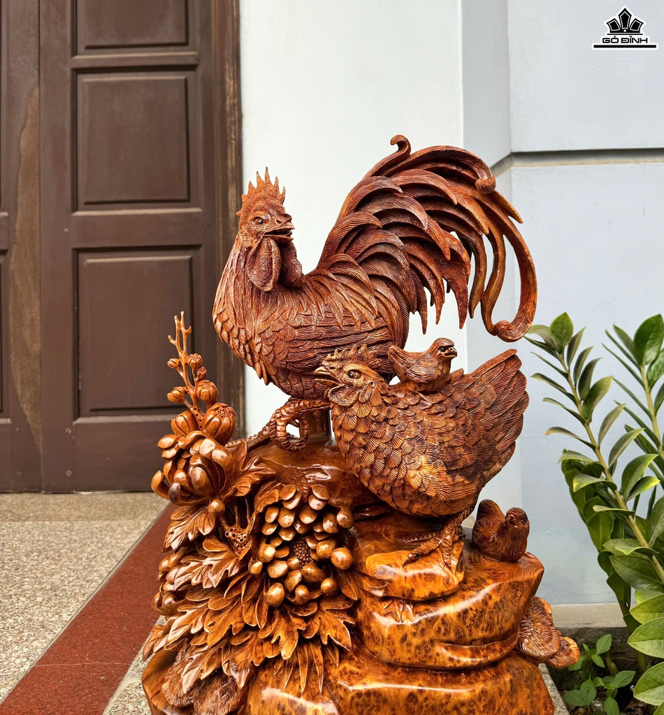 Tượng Gia Đình Gà Gỗ Nu Ngọc Am Cao Cả Kỷ 74 Ngang 38 Sâu 30 (cm) - Kỷ Cao 10 (cm)