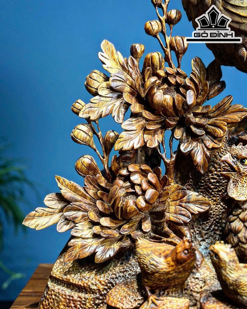 Tượng Gia Đình Gà Gỗ Sưa Cao 68 Ngang 46 Sâu 31 (cm)