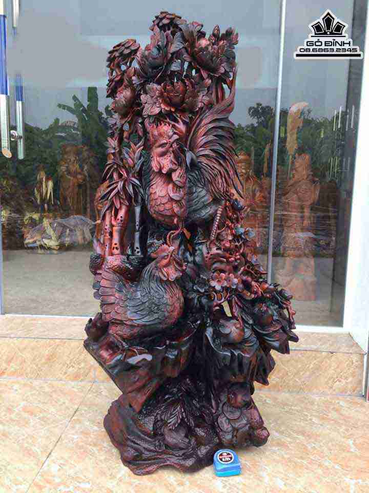 Tượng Gia Đình Gà Gỗ Trắc Cao 122 Rộng 60 Dày 42 (cm)