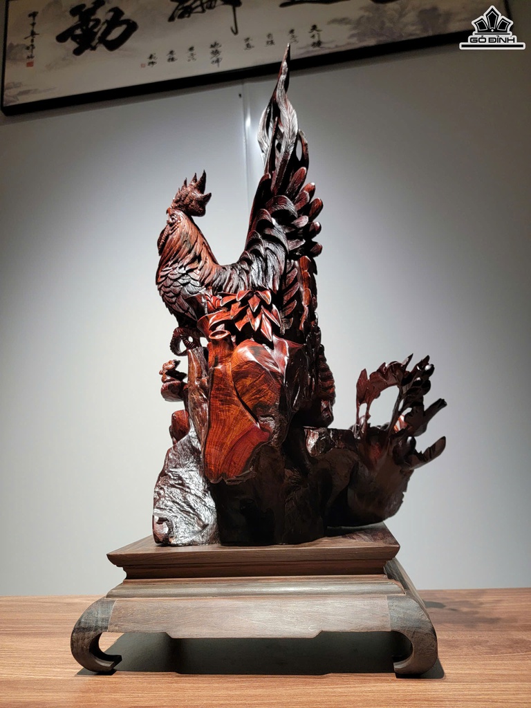 Tượng Gia Đình Gà Gỗ Trắc Cao 60 Ngang 35 Sâu 30 (cm)