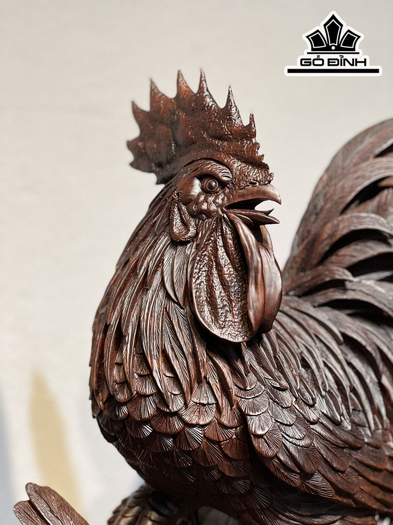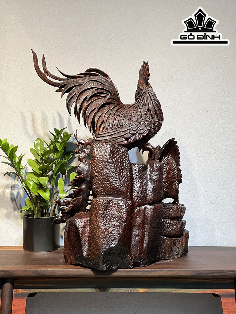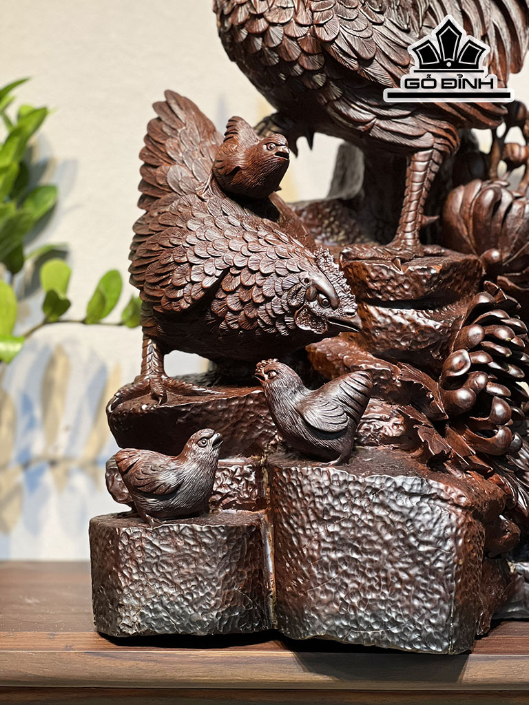 Tượng Gia Đình Gà Gỗ Trắc Cao 63 Ngang 41 Sâu 33 (cm)