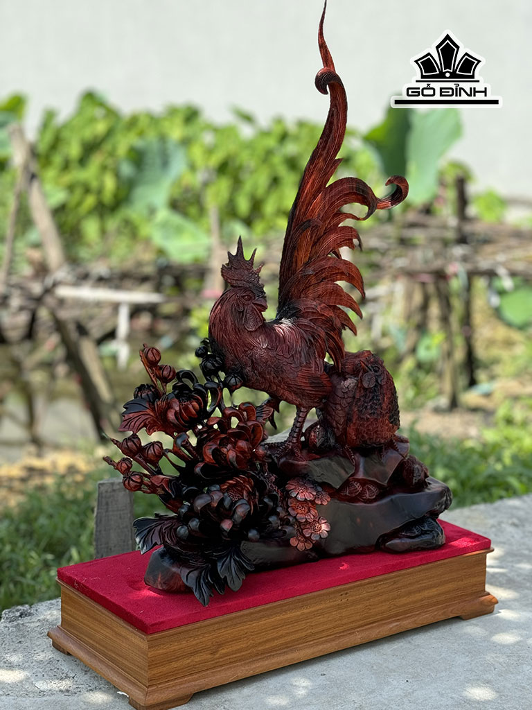 Tượng Gia Đình Gà Gỗ Trắc Cao 69 Ngang 50 Sâu 23 (cm)
