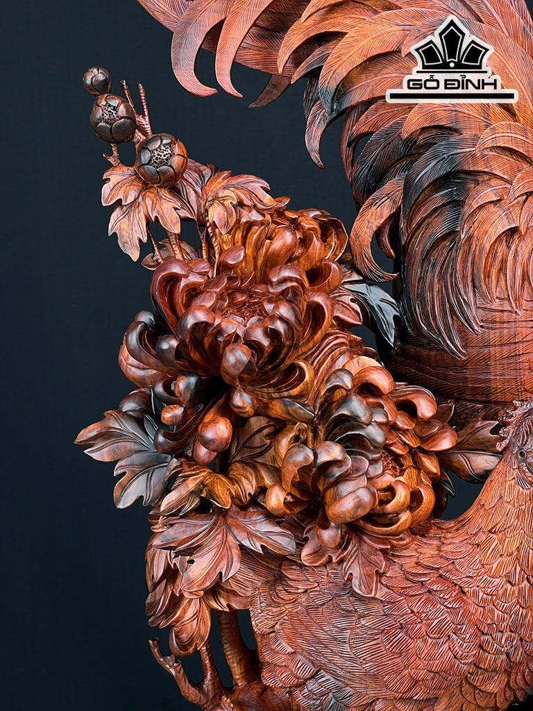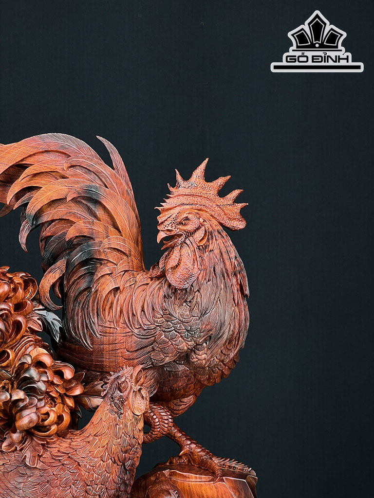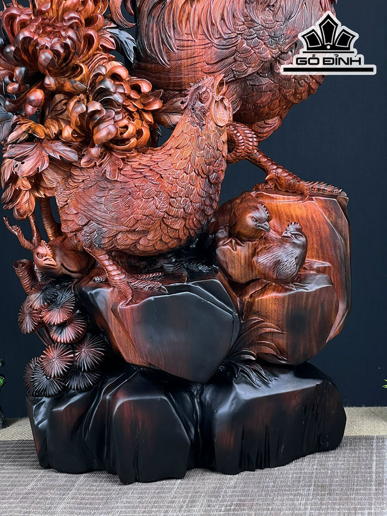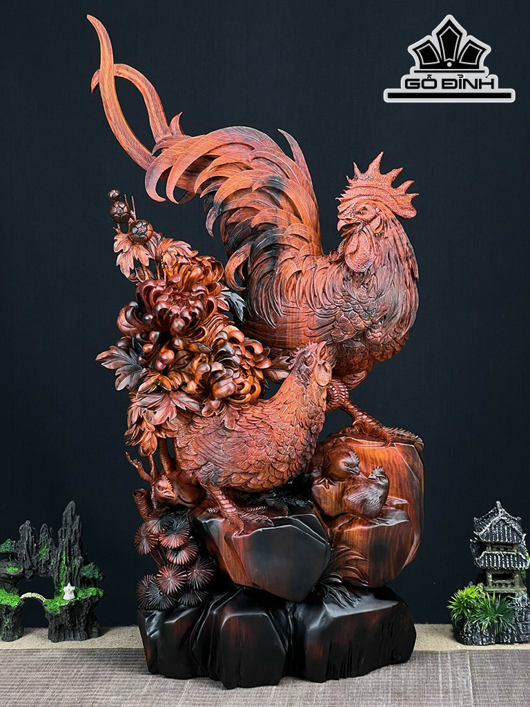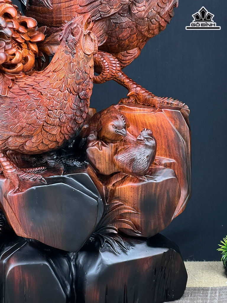 Tượng Gia Đình Gà Gỗ Trắc Cao 75 Ngang 38 Sâu 23 (cm)
