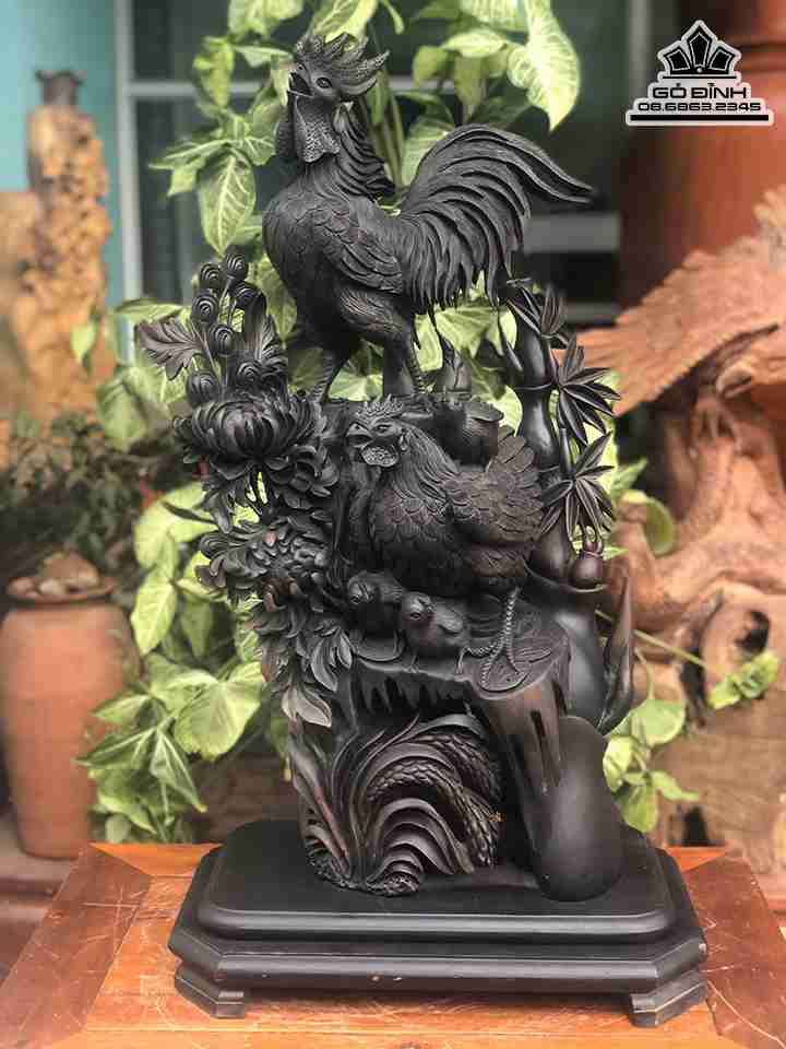 Tượng Gia Đình Gà Gỗ Trắc Cao 80 Rộng 42 Dày 20 (cm)