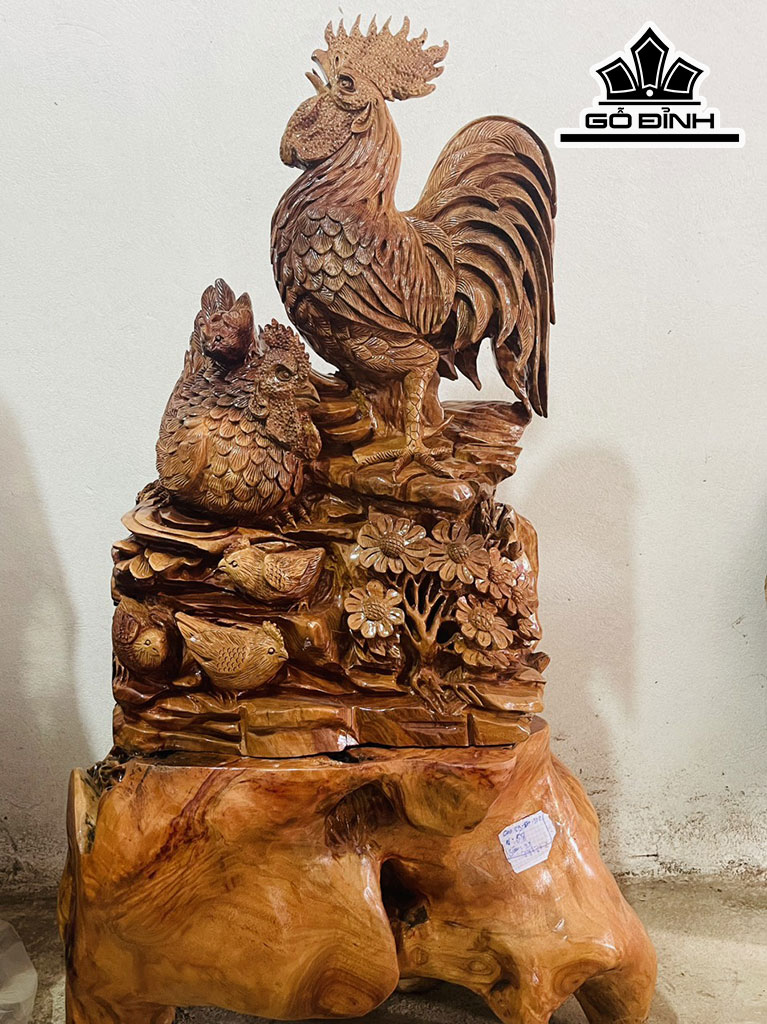 Tượng Gia Đình Gà Gỗ Xá Xị