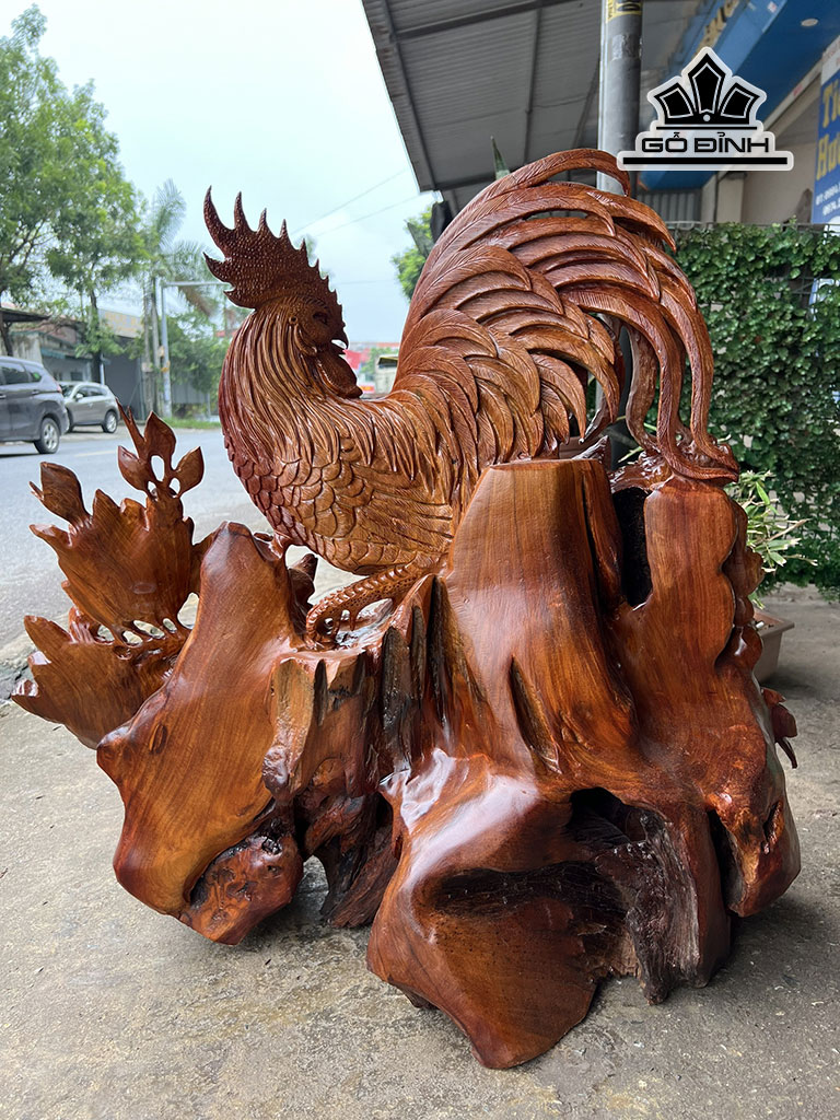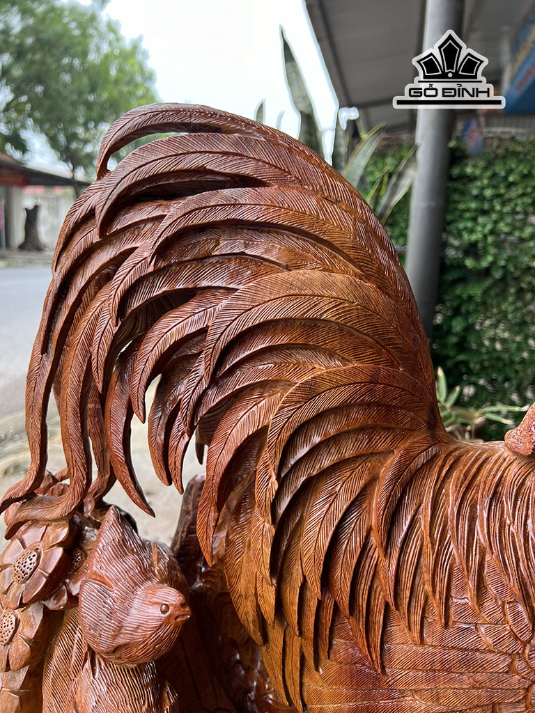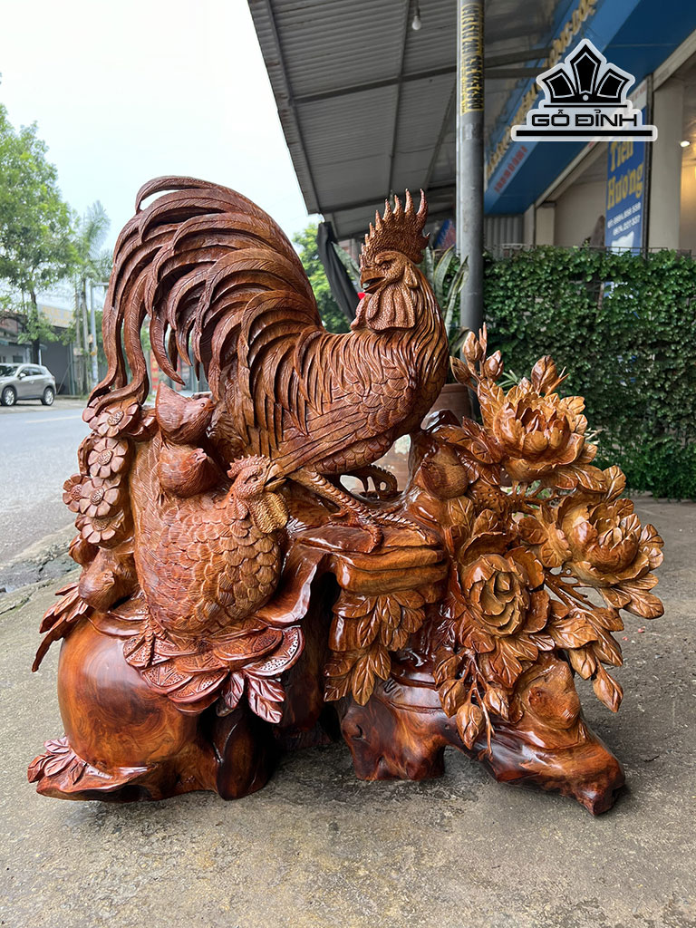 Tượng Gia Đình Gà Kim Kê Tài Lộc Gỗ Hương Cao 72 Ngang 76 Sâu 35 (cm)
