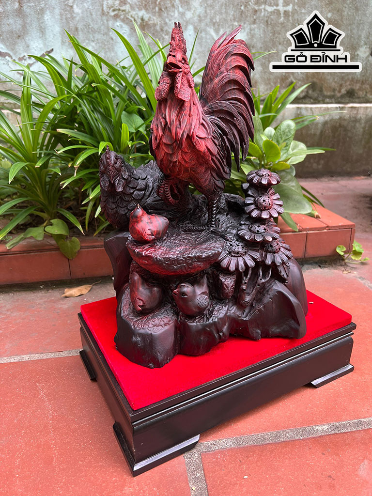 Tượng Gia Đình Gà Phong Thủy Gỗ Trắc Cao 35 Ngang 25 Sâu 28 (cm)