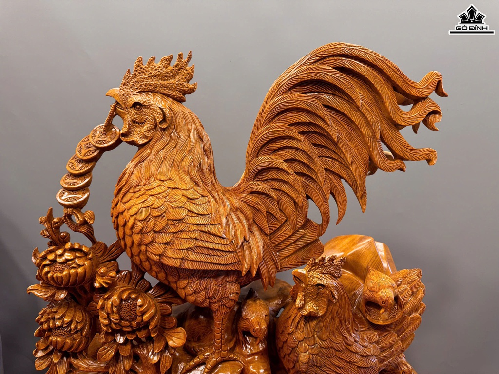 Tượng Gia Đình Gà Toàn Gia Phúc Gỗ Ngọc Am Cao 65 Ngang 64 Sâu 28 (cm)