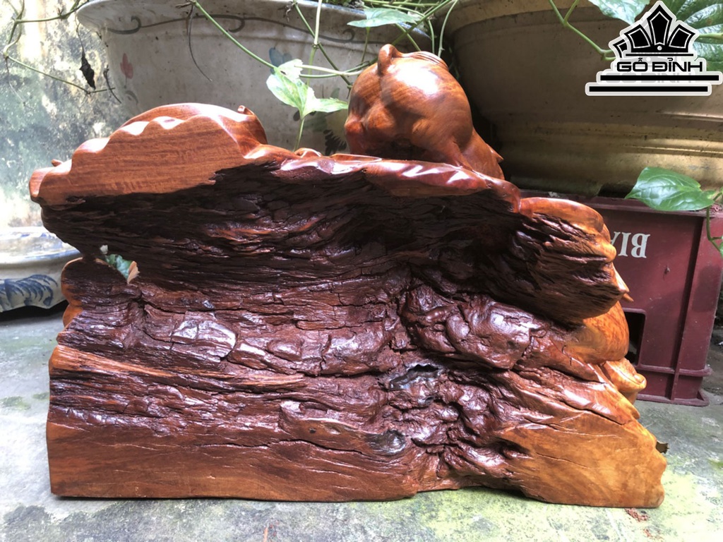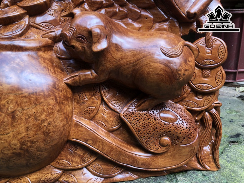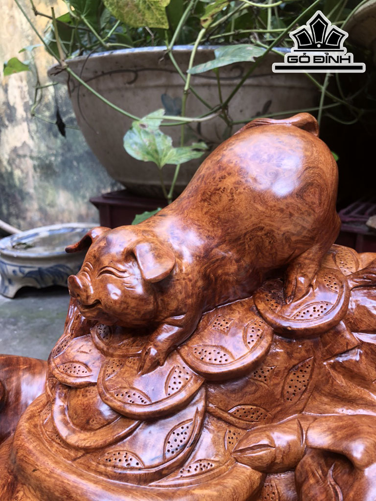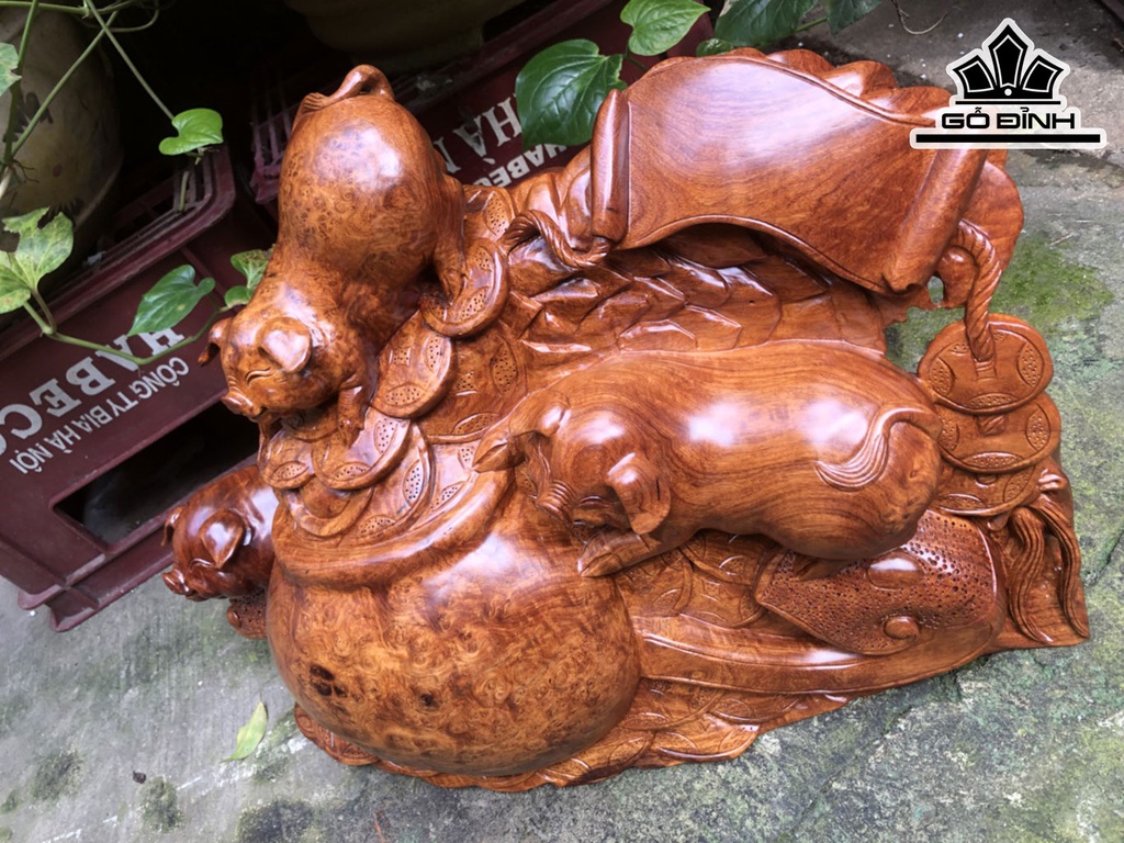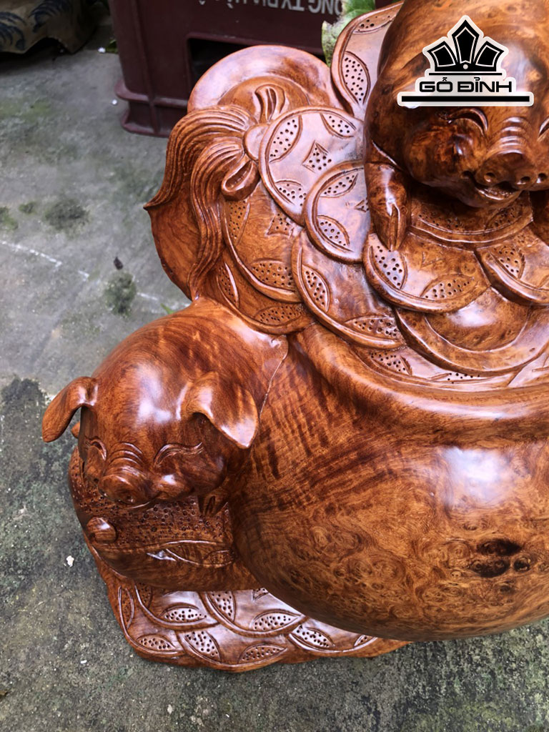 Tượng Gia Đình Heo Gỗ Hương Cao 38 Ngang 52 Sâu 20 (cm)