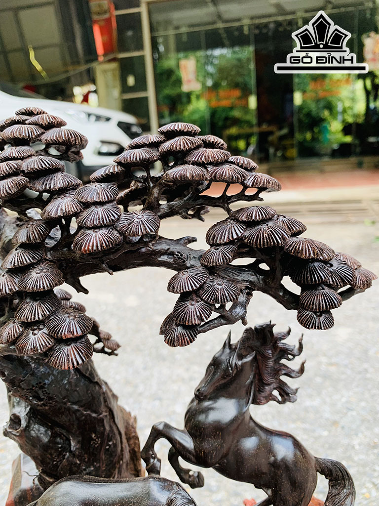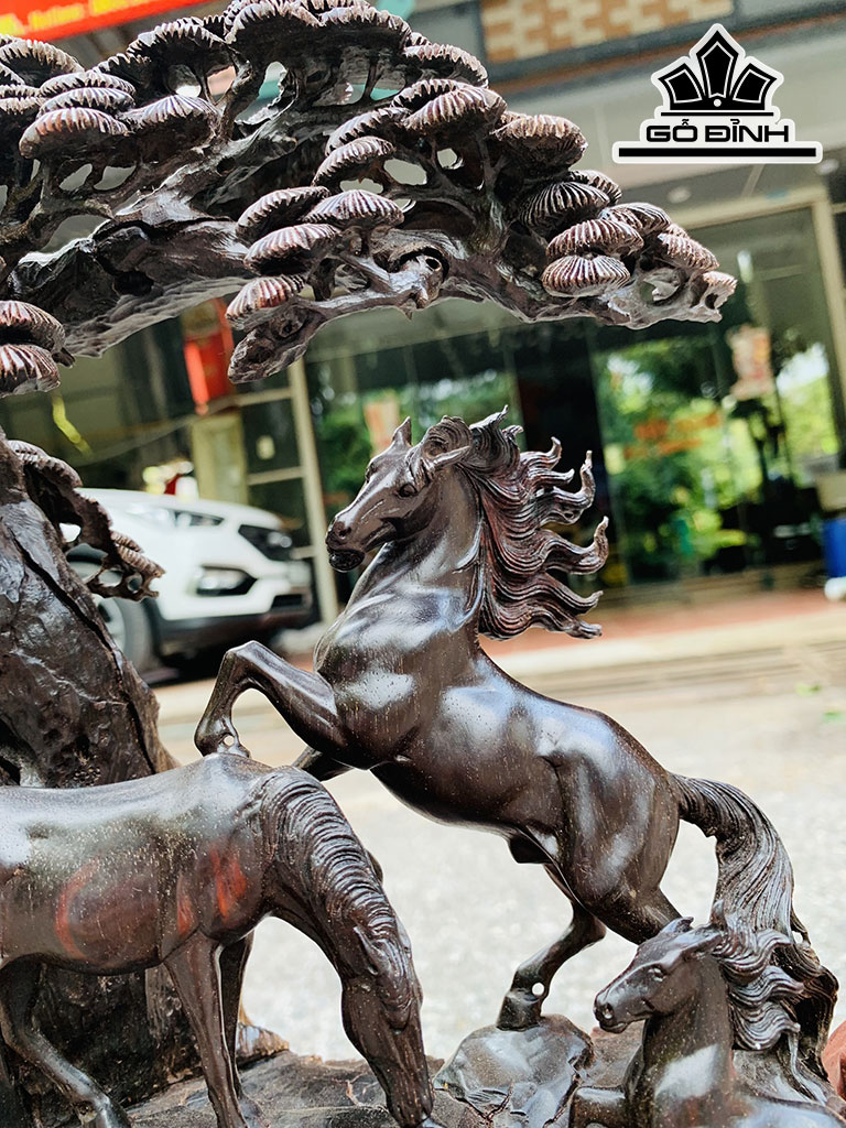 Tượng Gia Đình Ngựa Gỗ Trắc Cao 37 Ngang 35 Sâu 20 (cm)