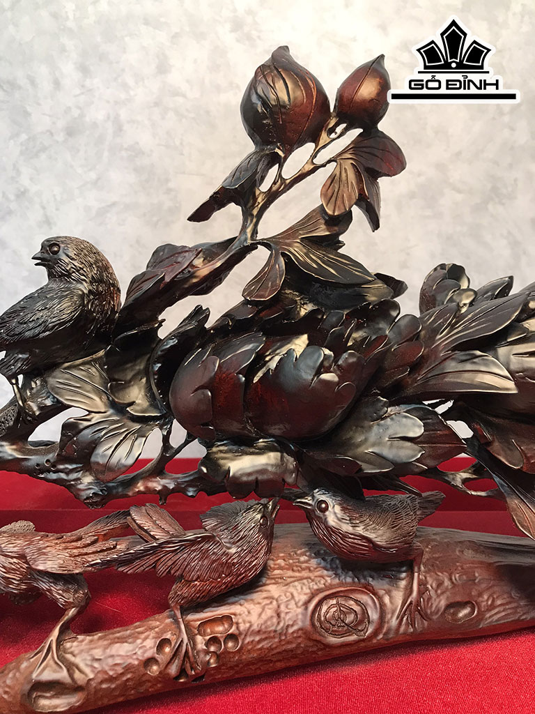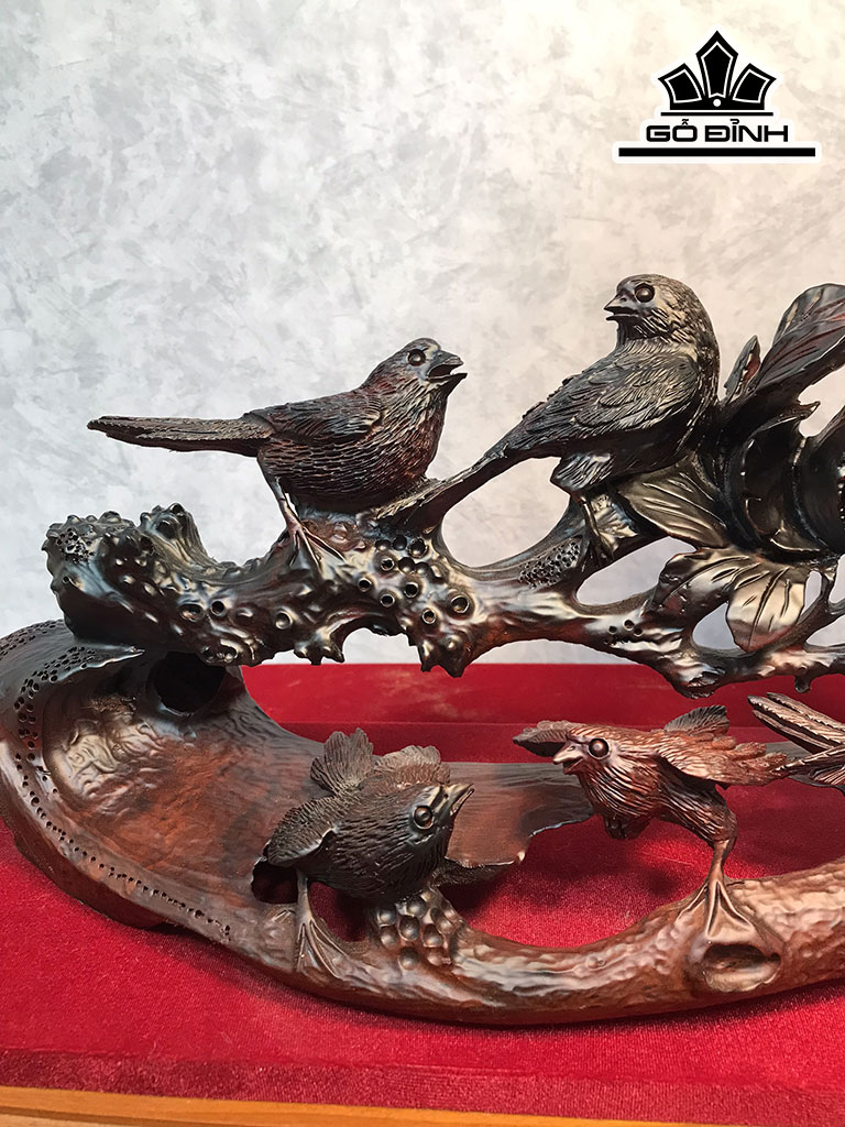 Tượng Gia Đình Nhà Chim Gỗ Trắc Cao 30 Ngang 65 Sâu 16 (cm)