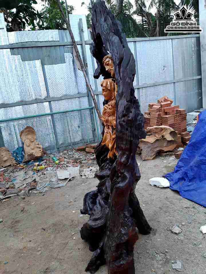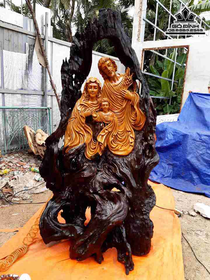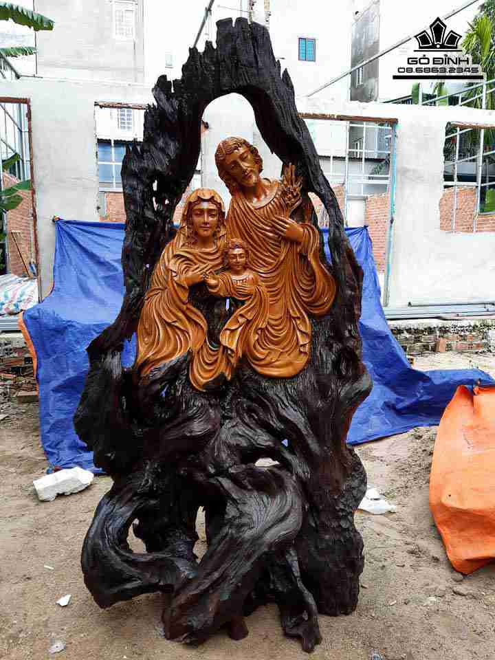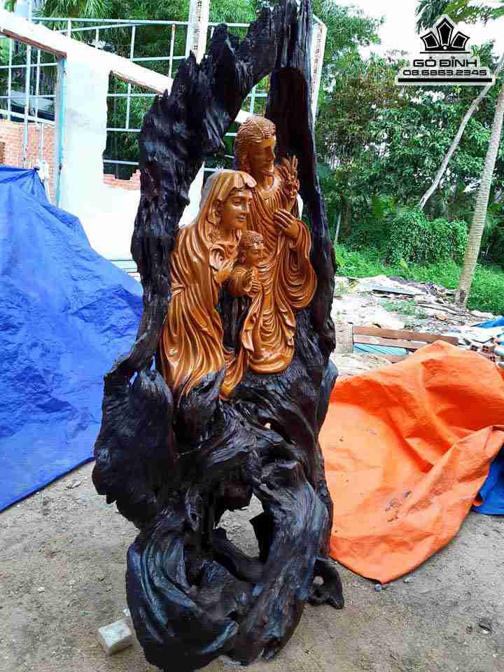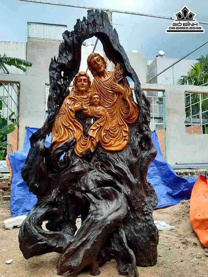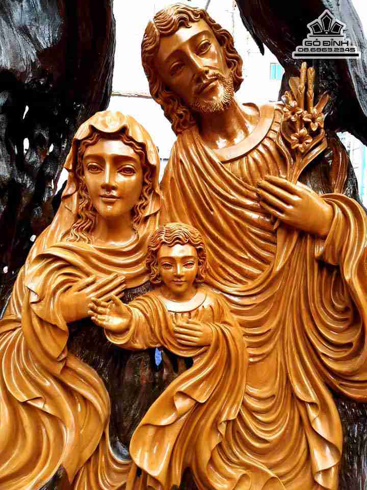 Tượng Gia Đình Thánh Gia Gỗ Trai Cao 210 Rộng 110 Dày 60 (cm)