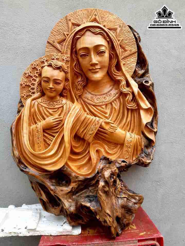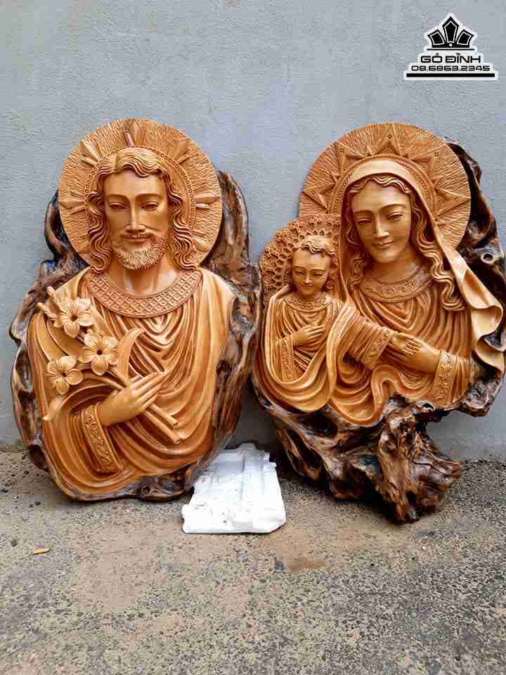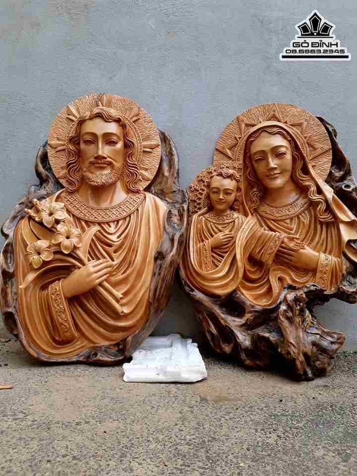 Tượng Gia Đình Thánh Gia Gỗ Trai Cao 80 Rộng 55 (cm)