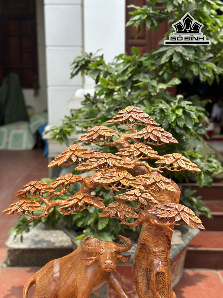 Tượng Gia Đình Trâu Gỗ Hương Cao 83 Ngang 65 Sâu 36 (cm)