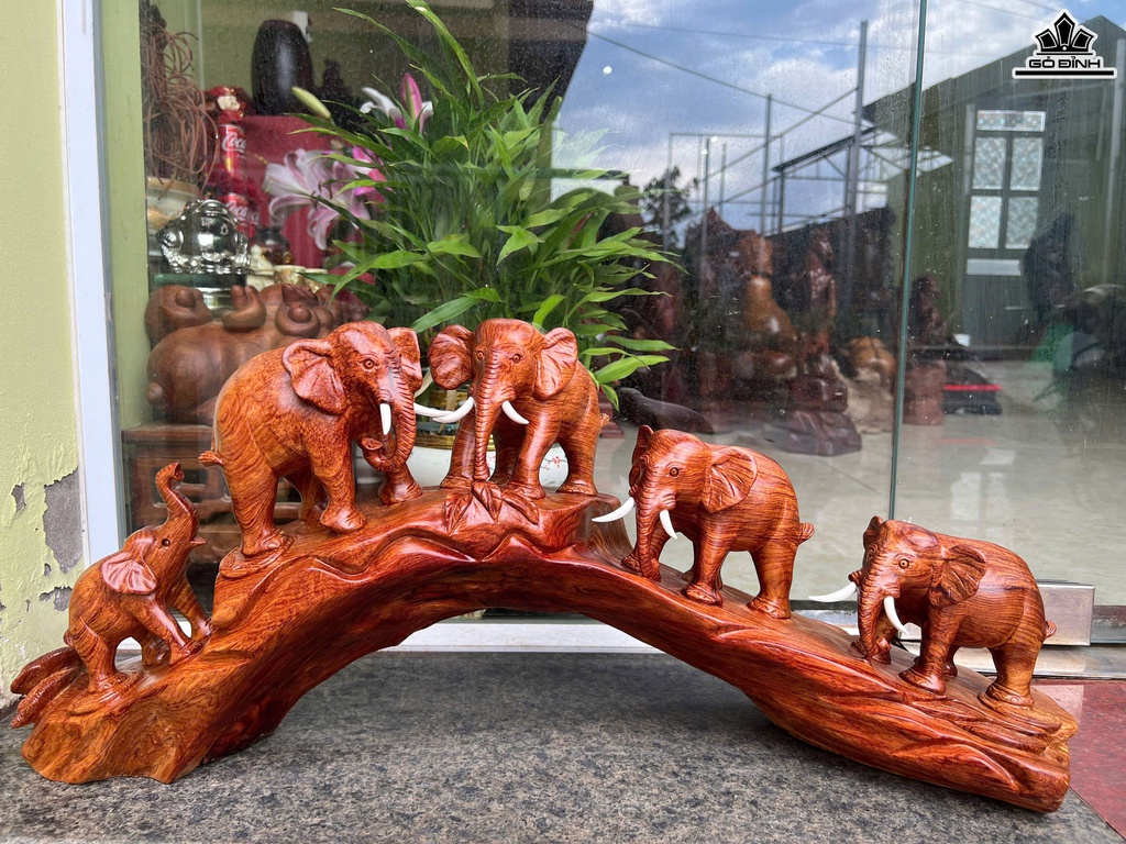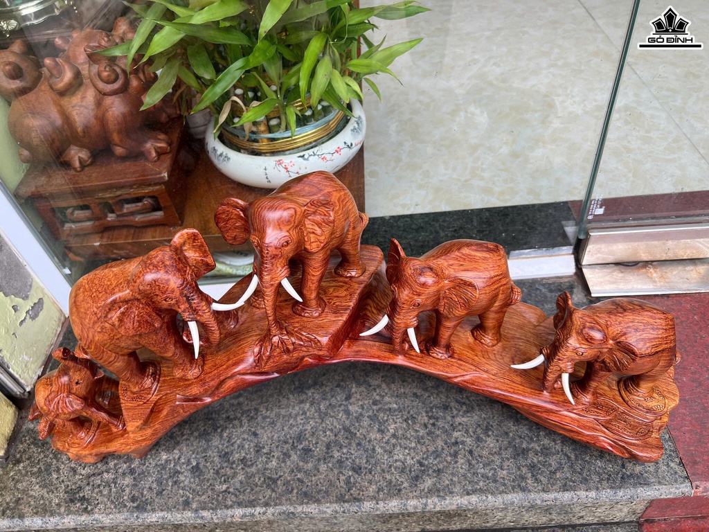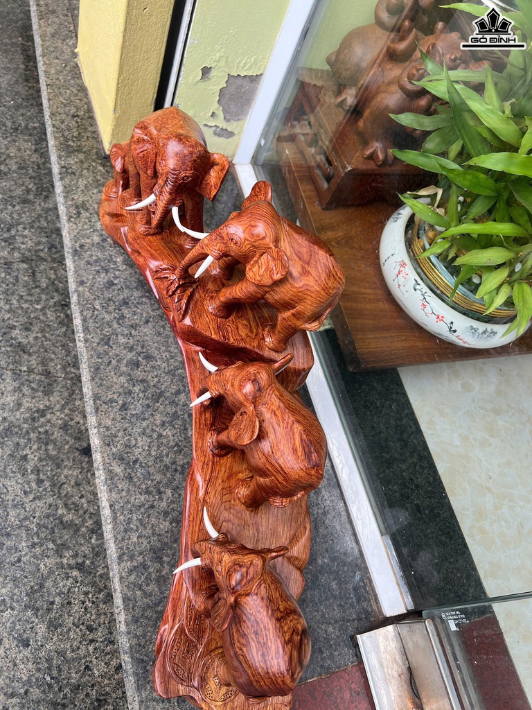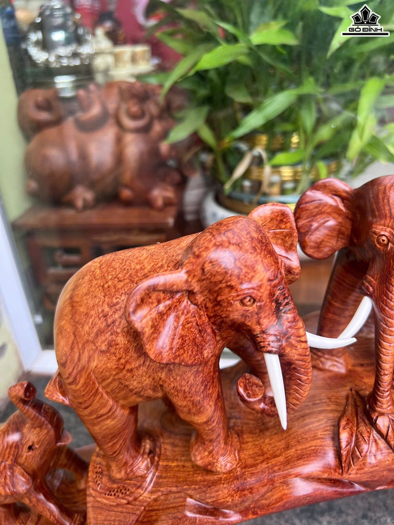 Tượng Gia Đình Voi Gỗ Cẩm Cao 29 Ngang 62 Sâu 16 (cm)
