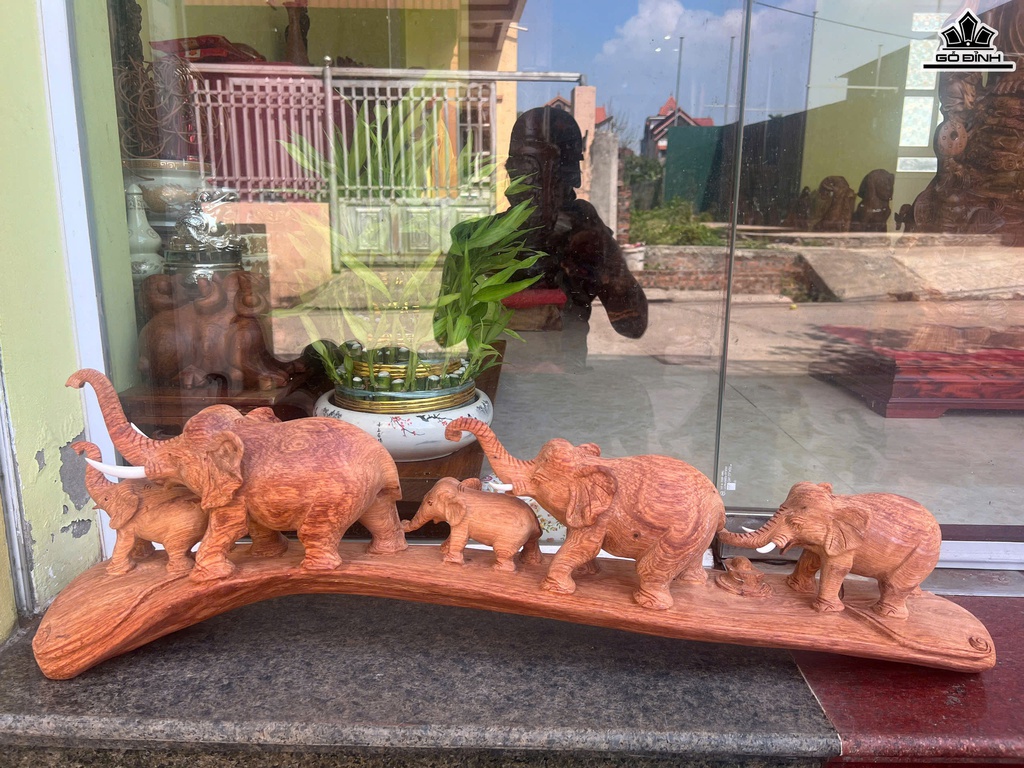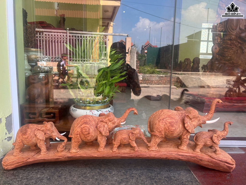 Tượng Gia Đình Voi Gỗ Hương Cao 25 Ngang 80 Sâu 14 (cm)
