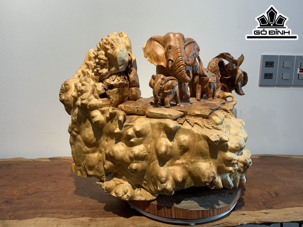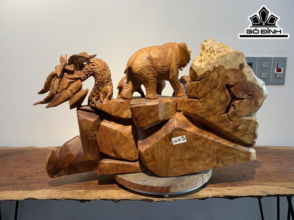 Tượng Gia Đình Voi Gỗ Nu Hương Cao 36 Ngang 60 Sâu 33 (cm)