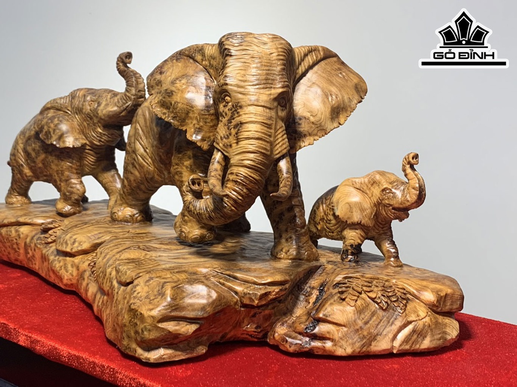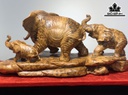 Tượng Gia Đình Voi Gỗ Nu Ngọc Am Cao 21 Ngang 44 Sâu 21 (cm)