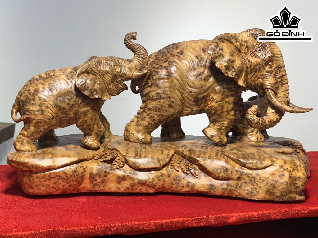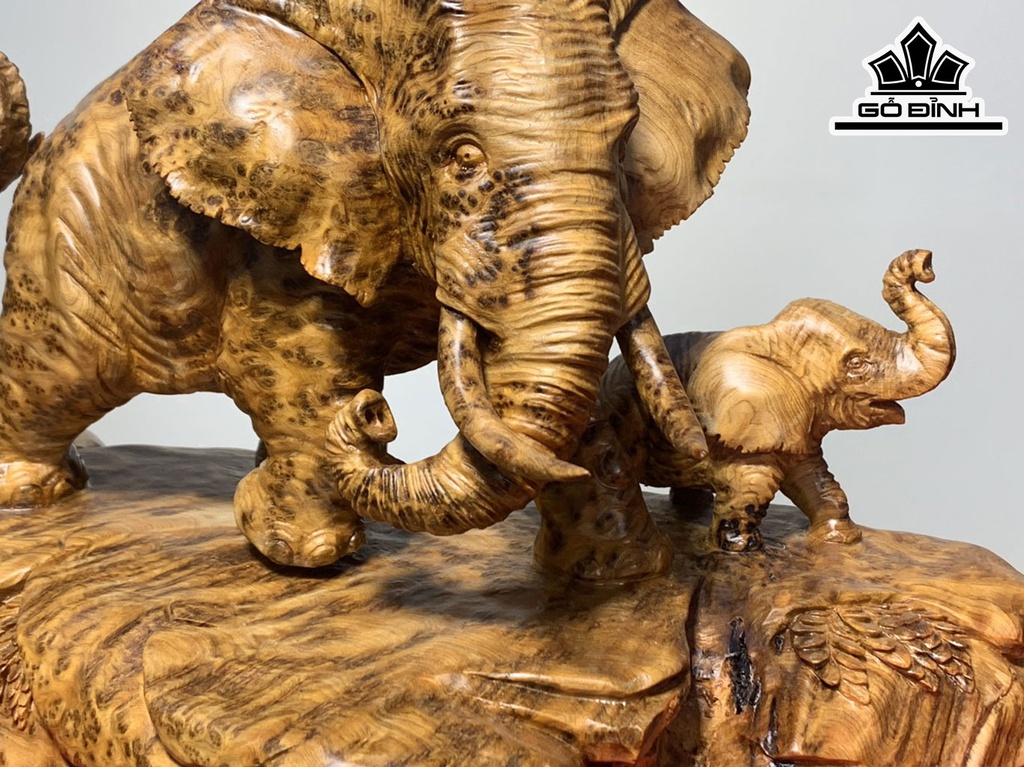 Tượng Gia Đình Voi Gỗ Nu Ngọc Am Cao 21 Ngang 44 Sâu 21 (cm)