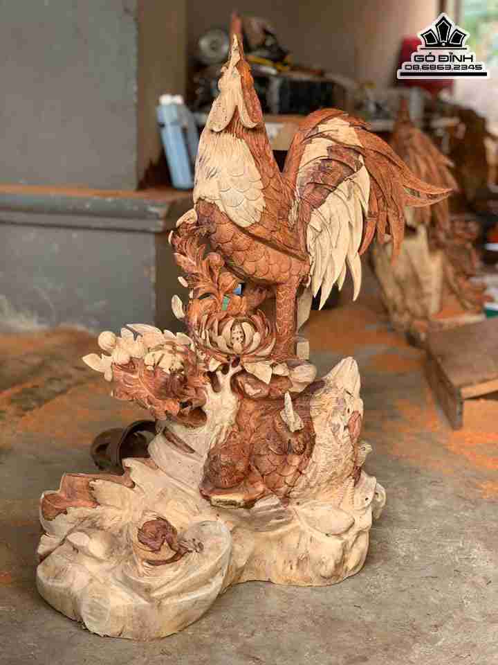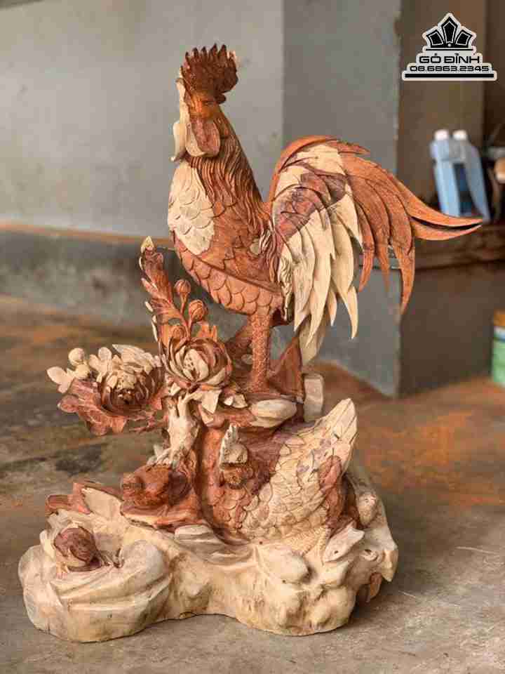 Tượng Gia Đình Gà Gỗ Hương Cao 72 Ngang 58 Sâu 35 (cm)