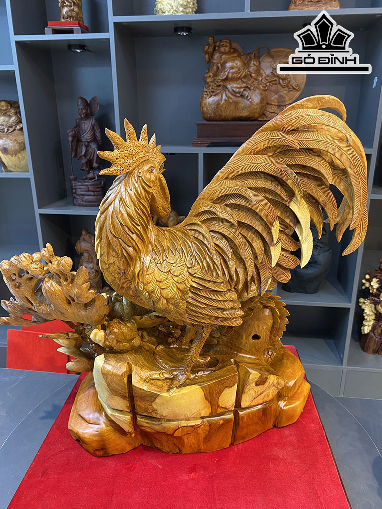 Tượng Gia Đình Gà Gỗ Hương Cao 55 Ngang 55 Sâu 30 (cm)