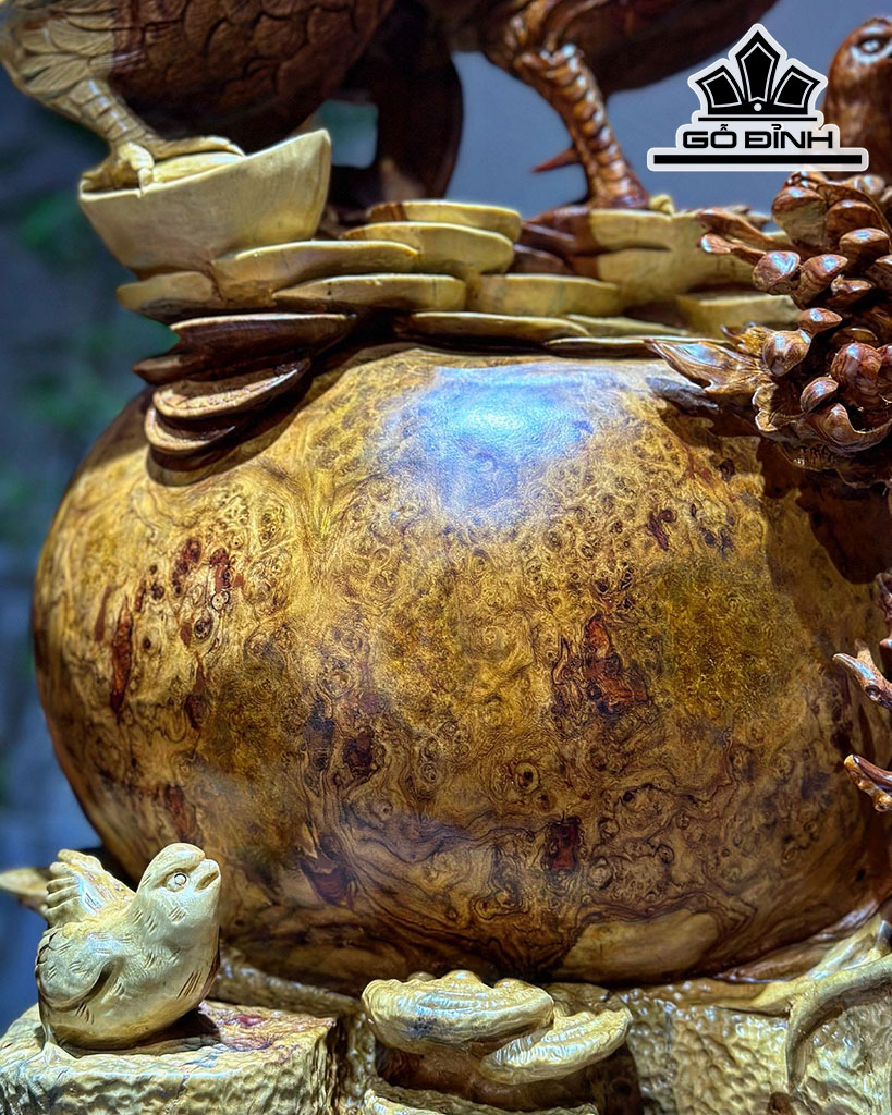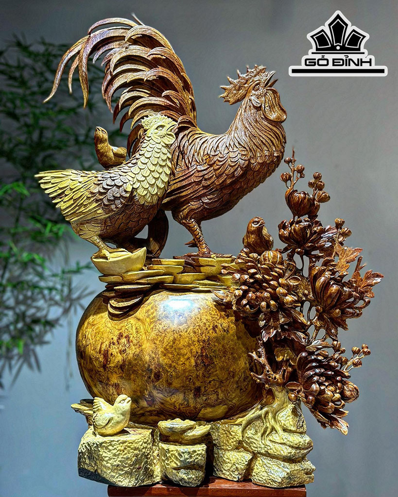 Tượng Gia Đình Gà Gỗ Nu Hương Cao 80 Ngang 60 Sâu 39 (cm)