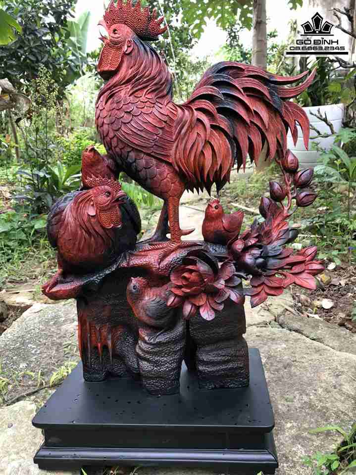Tượng Gia Đình Gà Gỗ Trắc Cao 60 Ngang 48 Sâu 25 (cm)