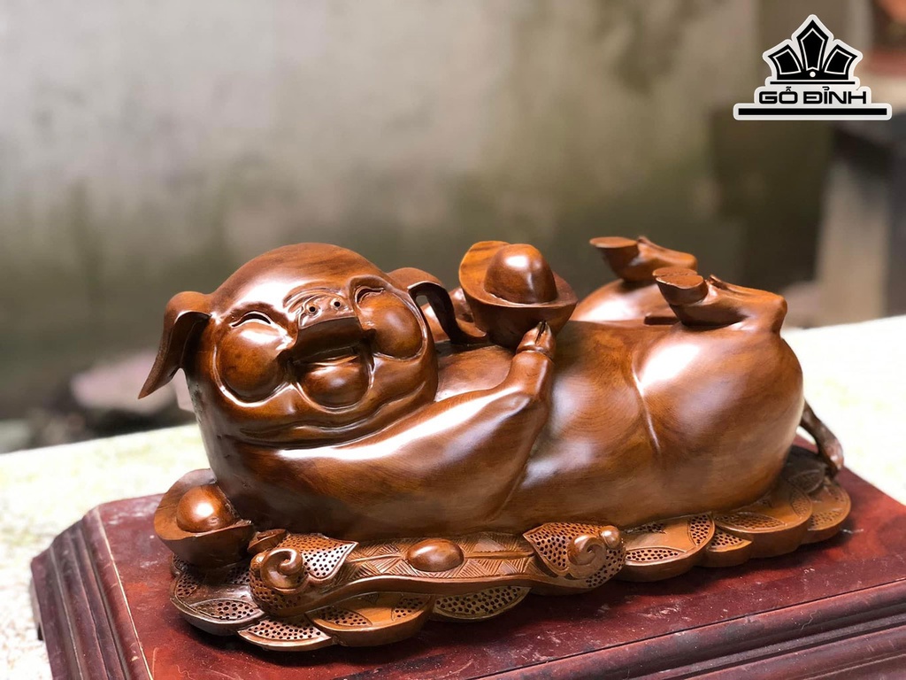 Tượng Heo Gỗ Bách Xanh Cao 17 Ngang 38 Sâu 18 (cm)