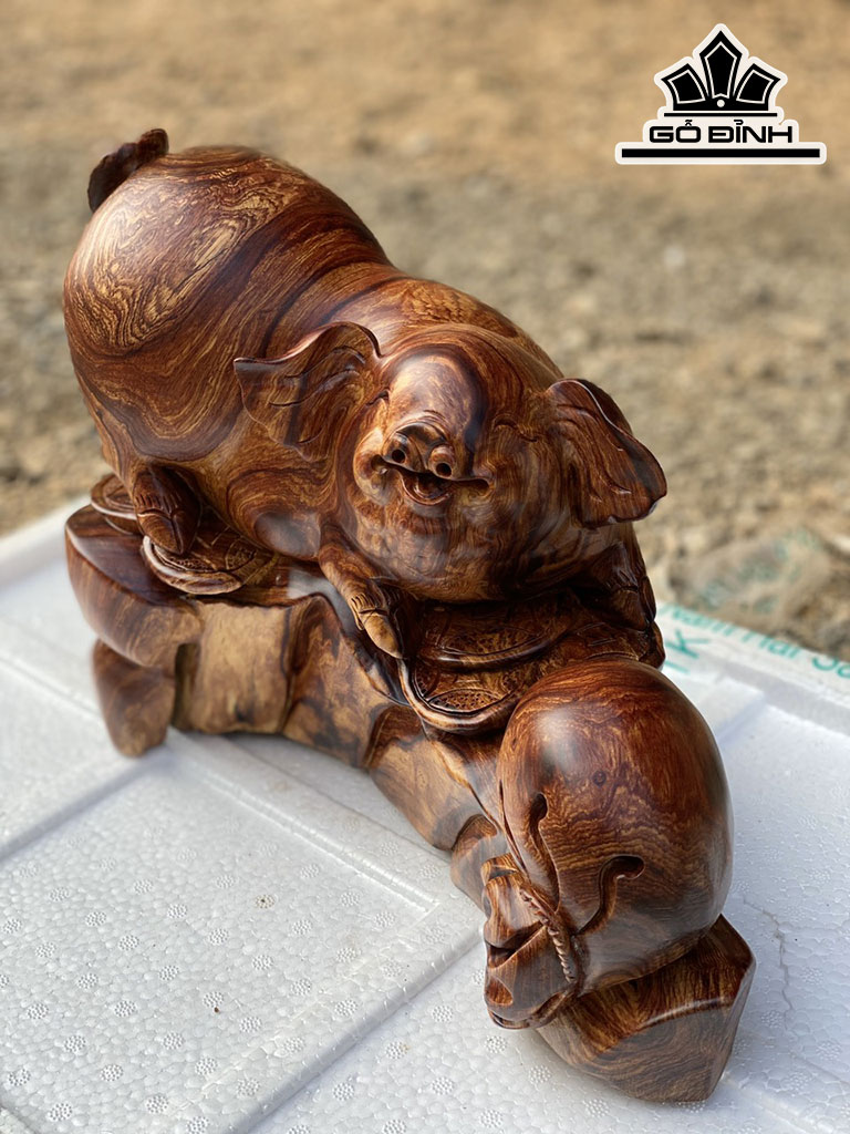 Tượng Heo Gỗ Cẩm Cao 25 Ngang 35 Sâu 15 (cm)