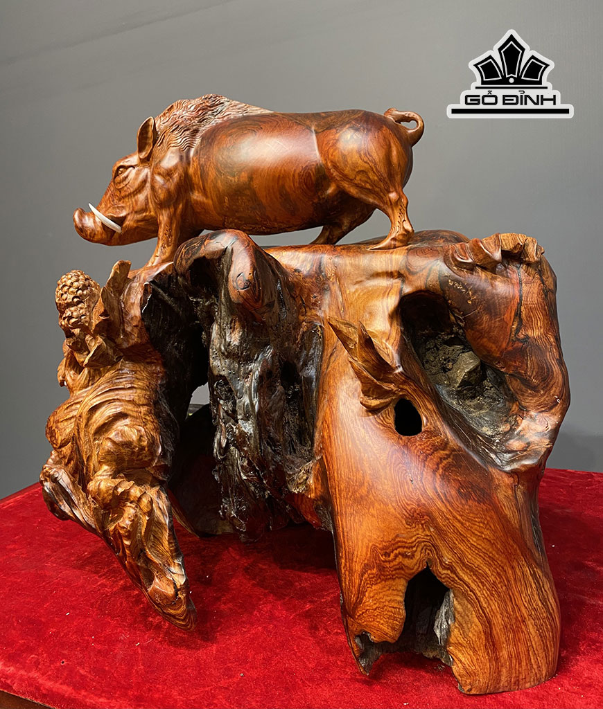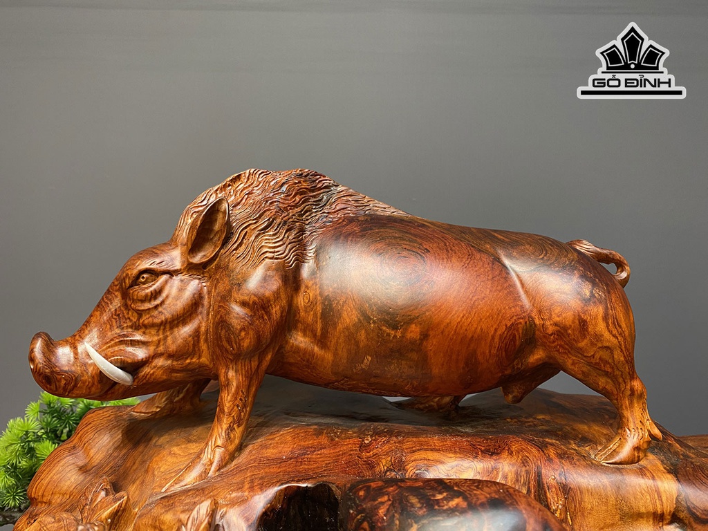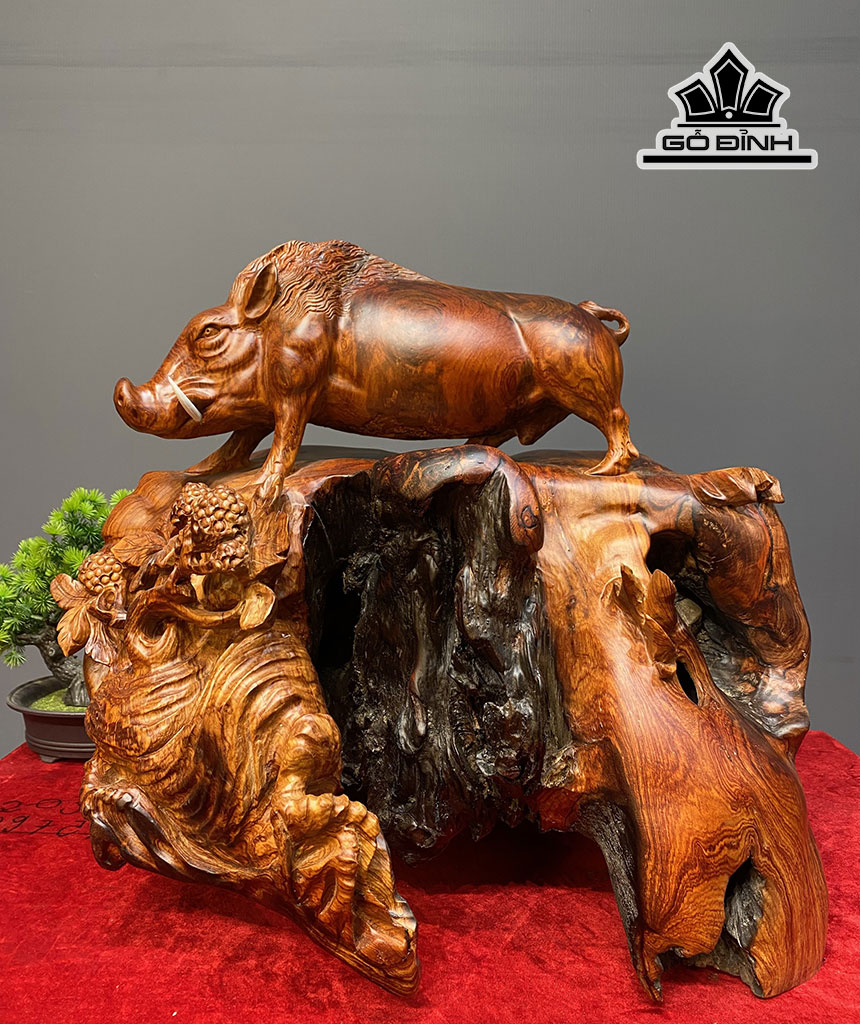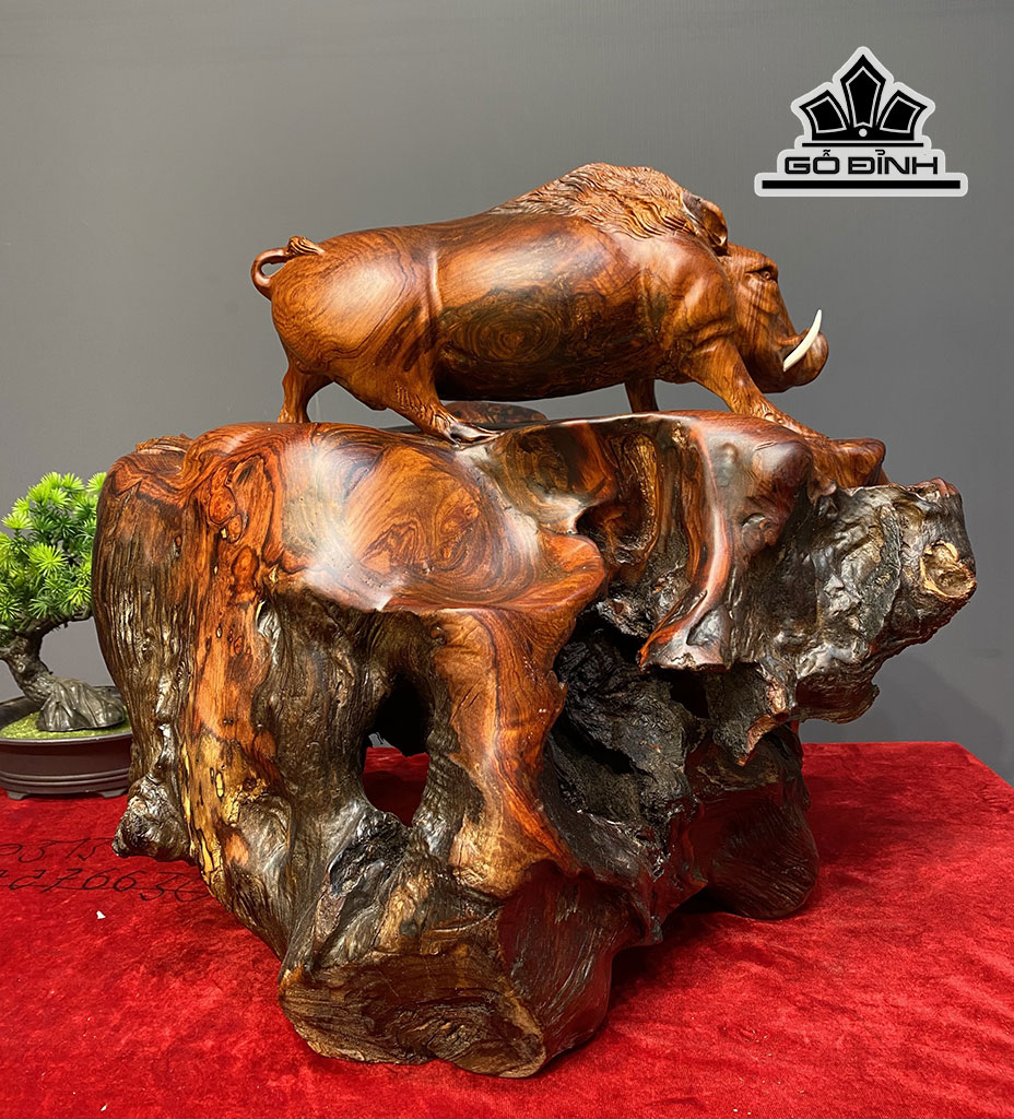 Tượng Heo Gỗ Cẩm Cao 40 Ngang 46 Sâu 36 (cm)