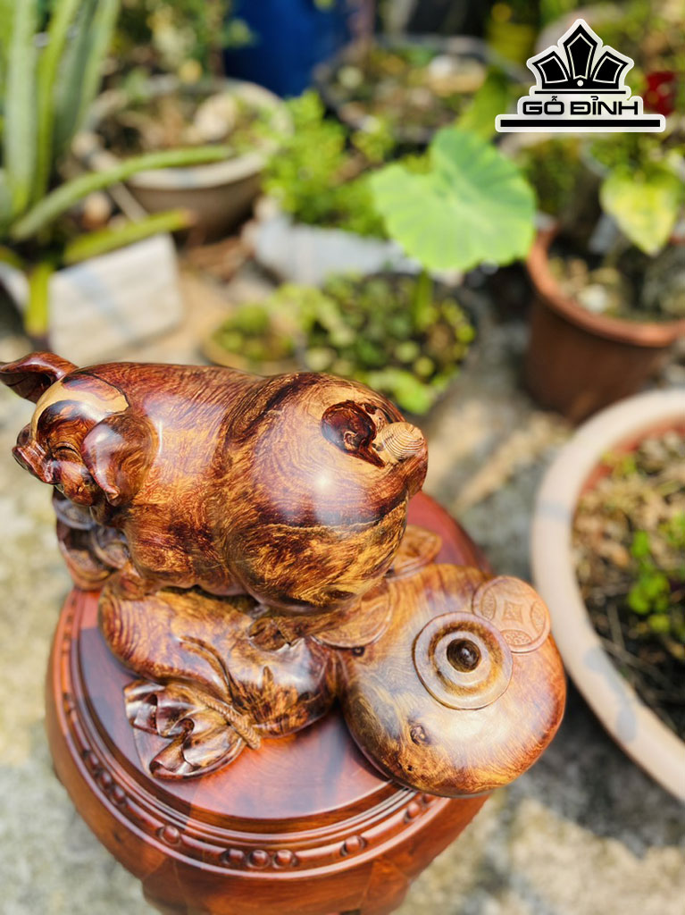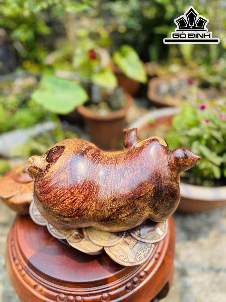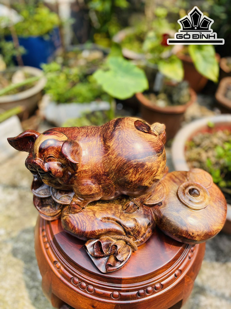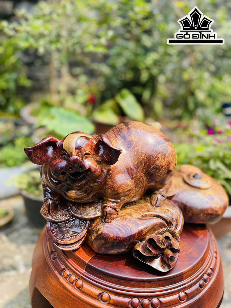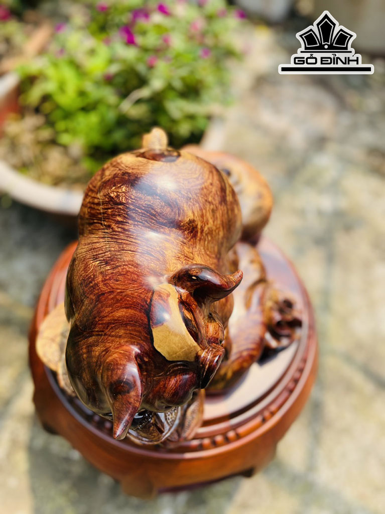 Tượng Heo Gỗ Chun Sụn Cẩm Cao 19 Ngang 38 Sâu 25 (cm)