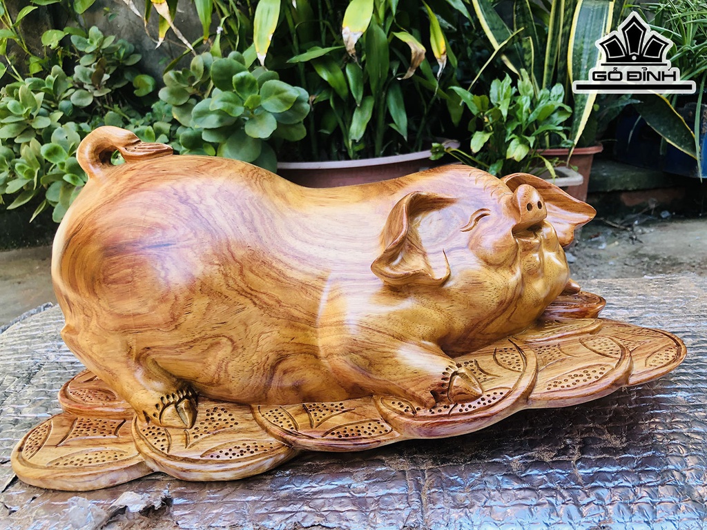 Tượng Heo Gỗ Hương Cao 19 Ngang 41 Sâu 22 (cm)