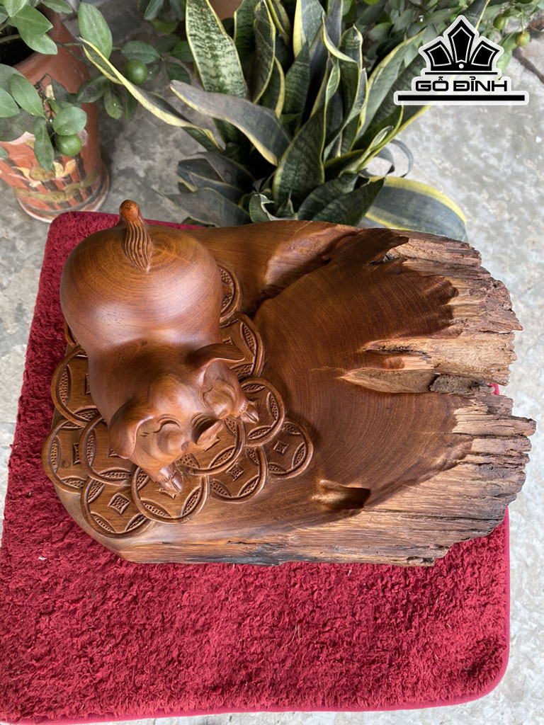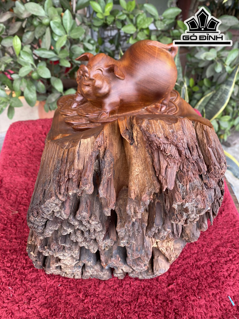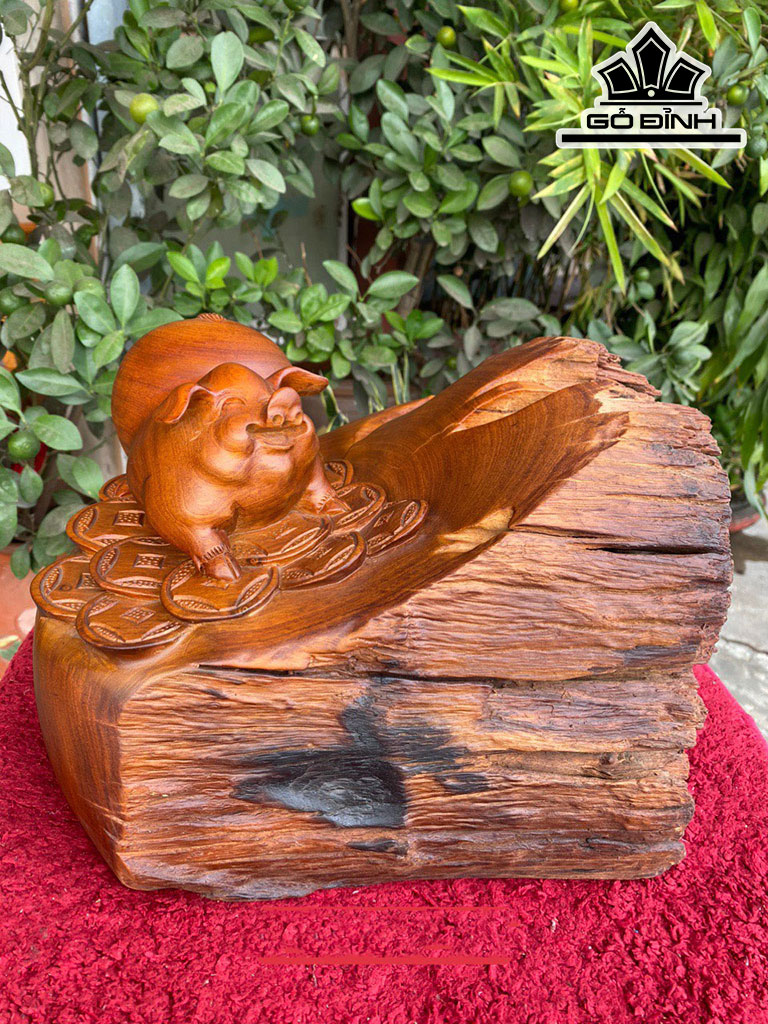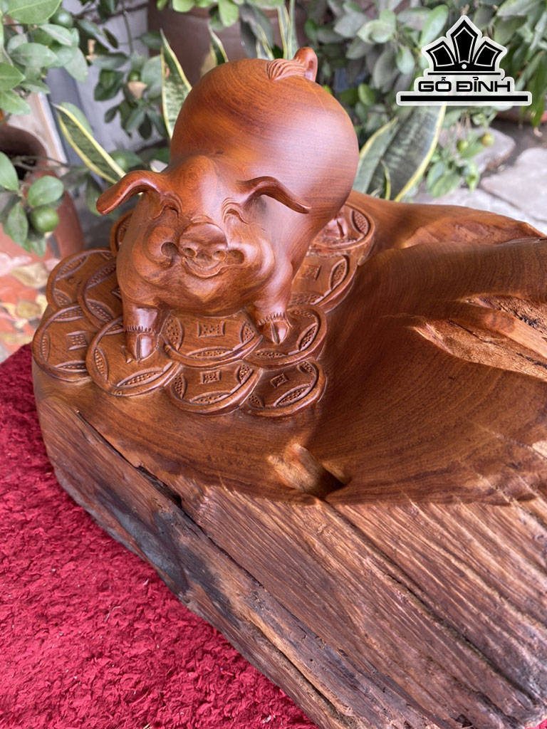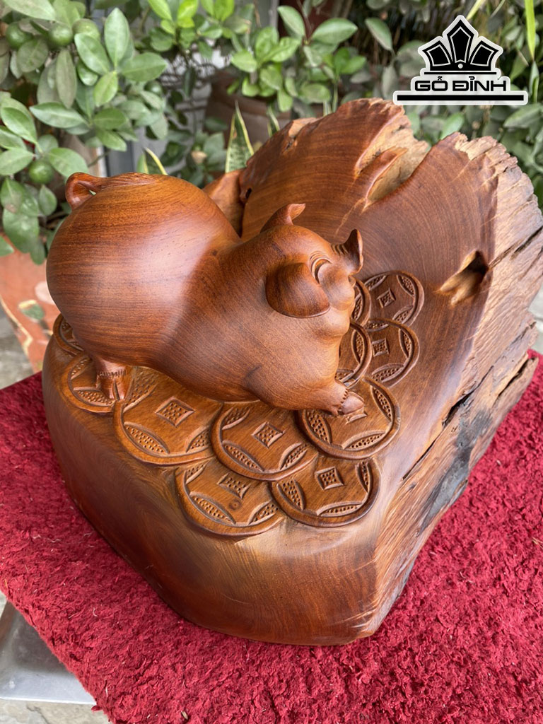 Tượng Heo Gỗ Hương Cao 20 Ngang 23 Sâu 29 (cm)