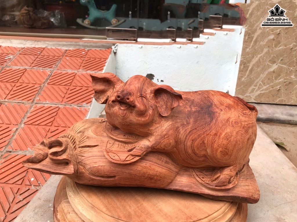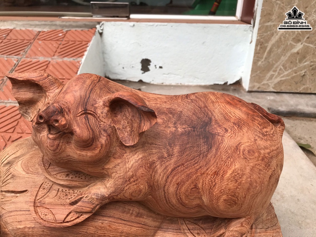 Tượng Heo Gỗ Hương Cao 20 Ngang 41 Sâu 23 (cm)