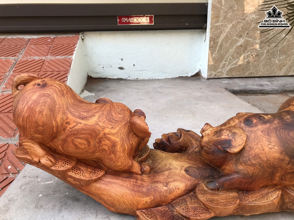 Tượng Heo Gỗ Hương Cao 20 Ngang 50 Sâu 22 (cm)