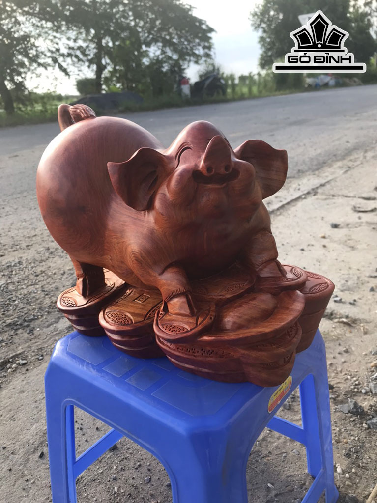 Tượng Heo Gỗ Hương Cao 22 Ngang 27 Sâu 17 (cm)