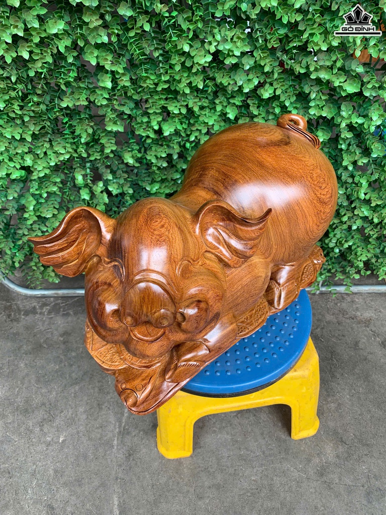 Tượng Heo Gỗ Hương Cao 22 Ngang 37 Sâu 20 (cm)