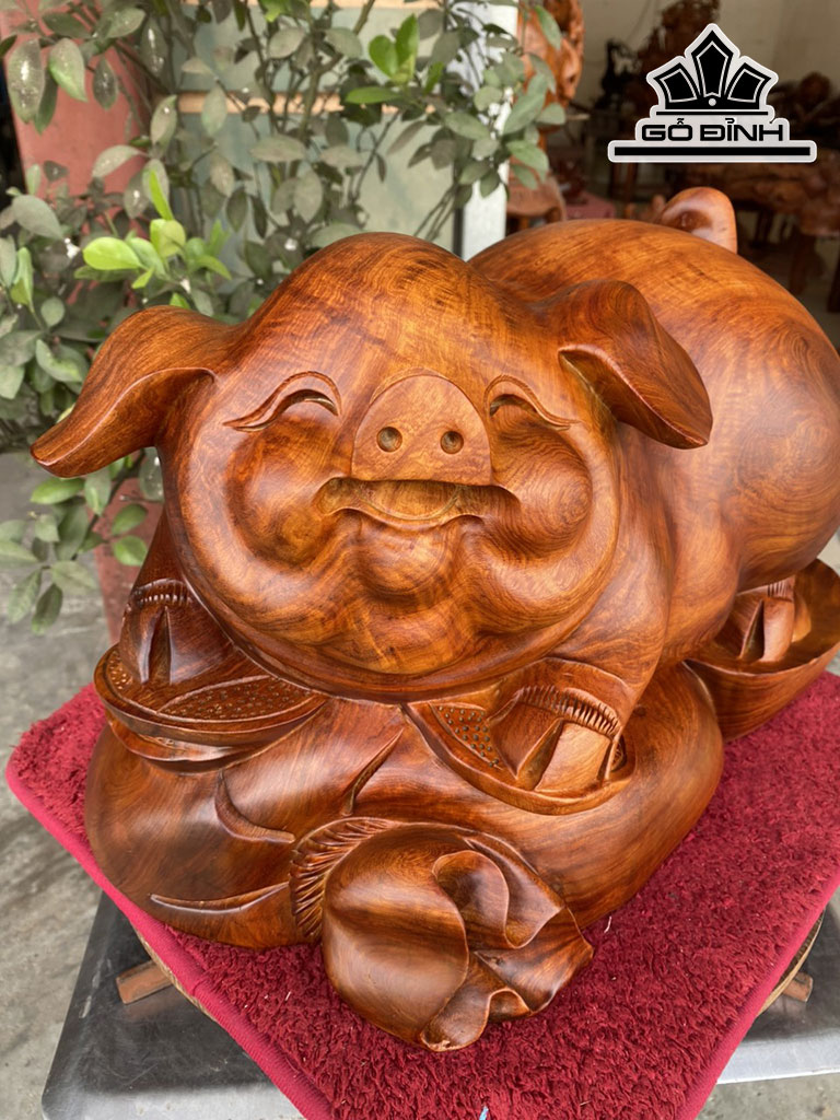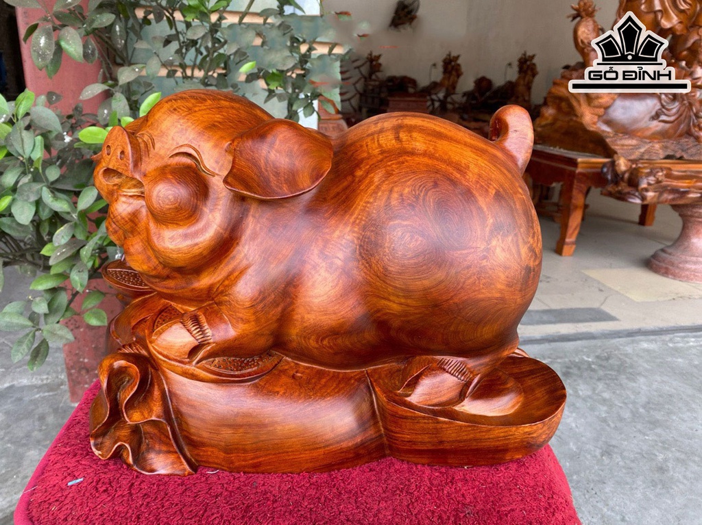 Tượng Heo Gỗ Hương Cao 28 Ngang 42 Sâu 28 (cm)