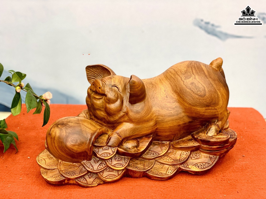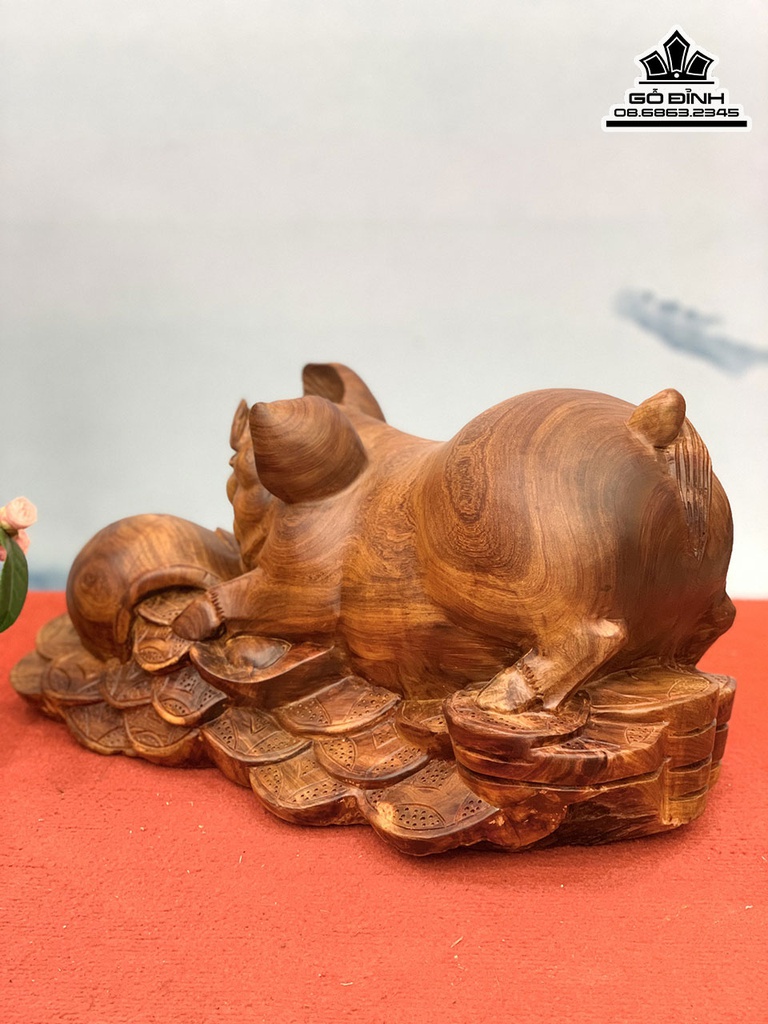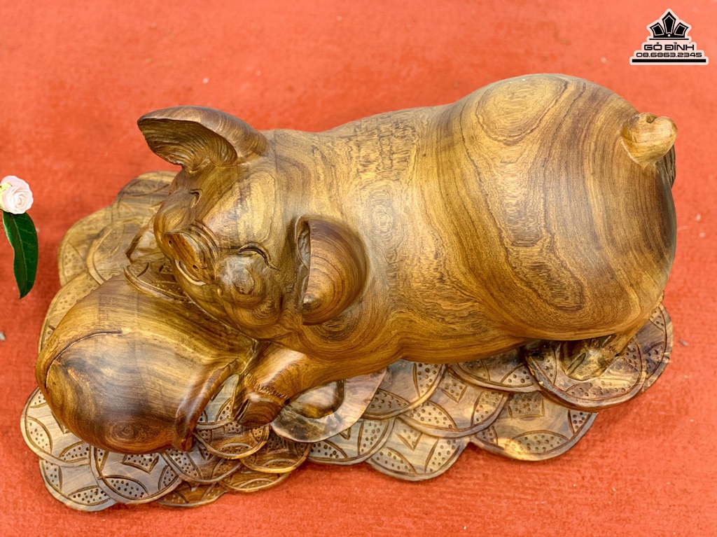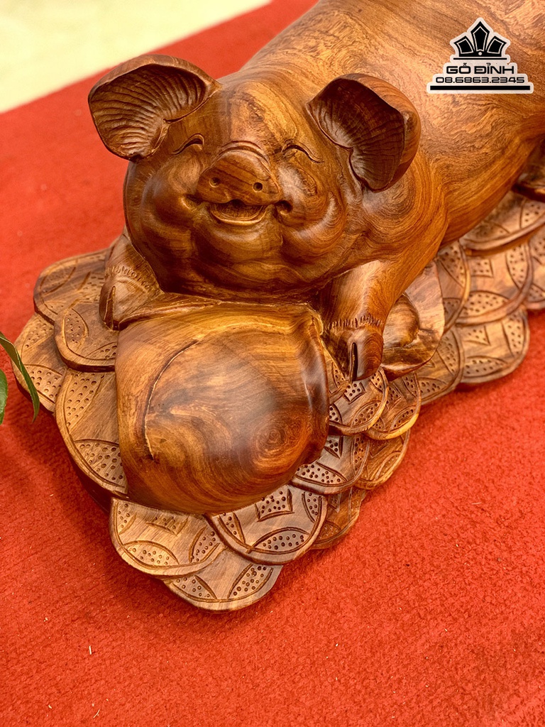 Tượng Heo Gỗ Hương Cao 28 Ngang 50 Sâu 30 (cm)